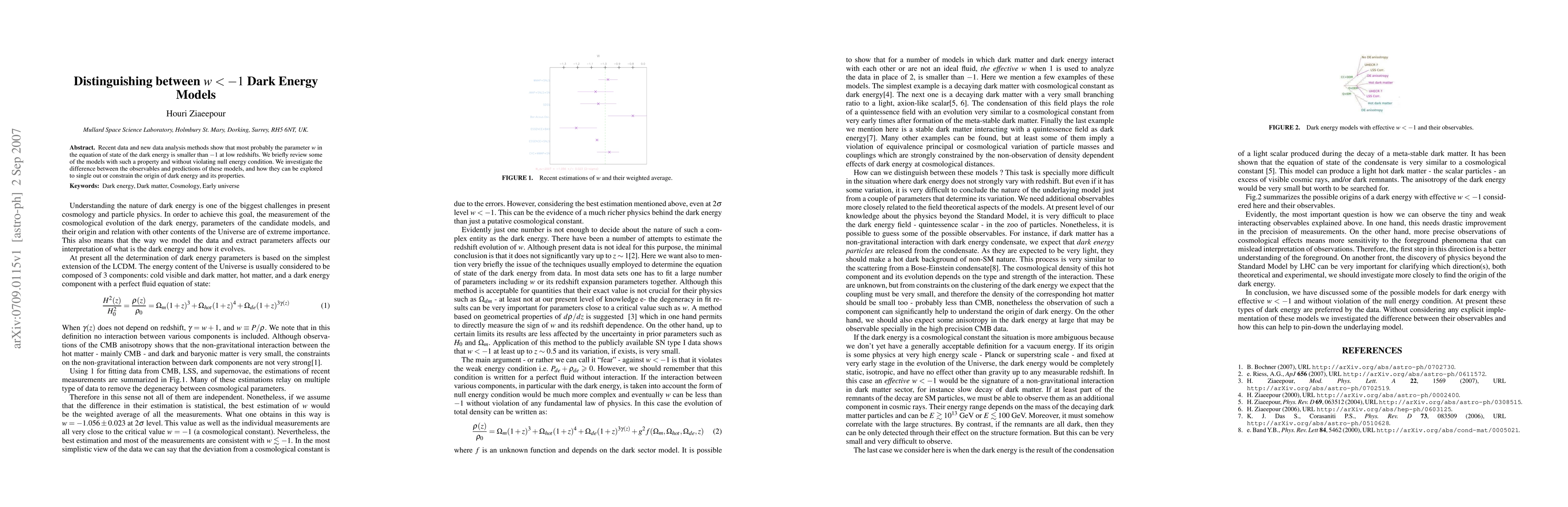Recent data and new data analysis methods show that most probably the parameter $w$ in the equation of state of the dark energy is smaller than -1 at low redshifts. We briefly review some of the models with such a property and without violating null energy condition. We investigate the difference between the observables and predictions of these models, and how they can be explored to single out or constrain the origin of dark energy and its properties.