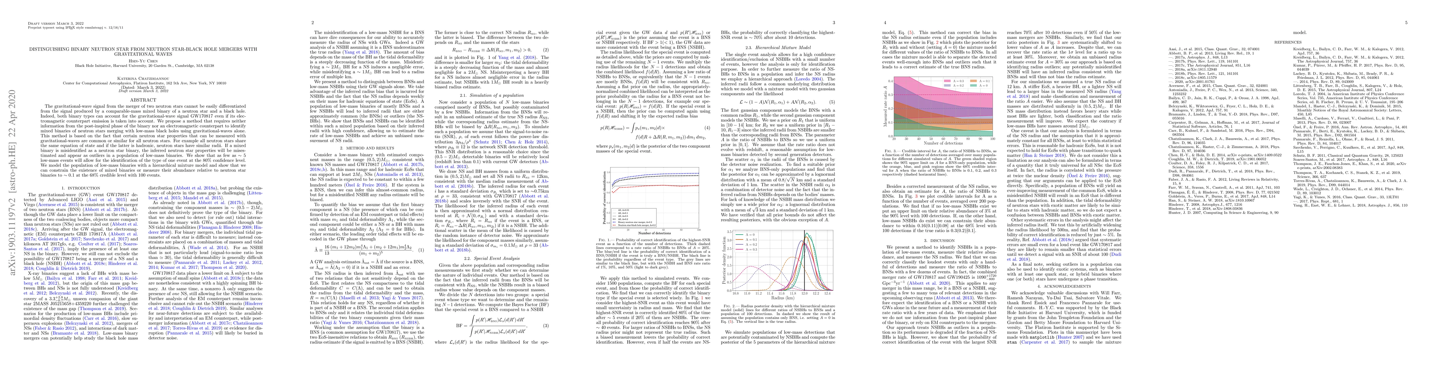 This paper proposes a method to distinguish between binary neutron star mergers and neutron star-black hole mergers using gravitational waves alone, without requiring post-inspiral data or electromagnetic counterparts. The method leverages common neutron star properties, such as their equation of state and radii, to identify misidentified mixed binaries, enabling the detection of such events with as few as five occurrences.
