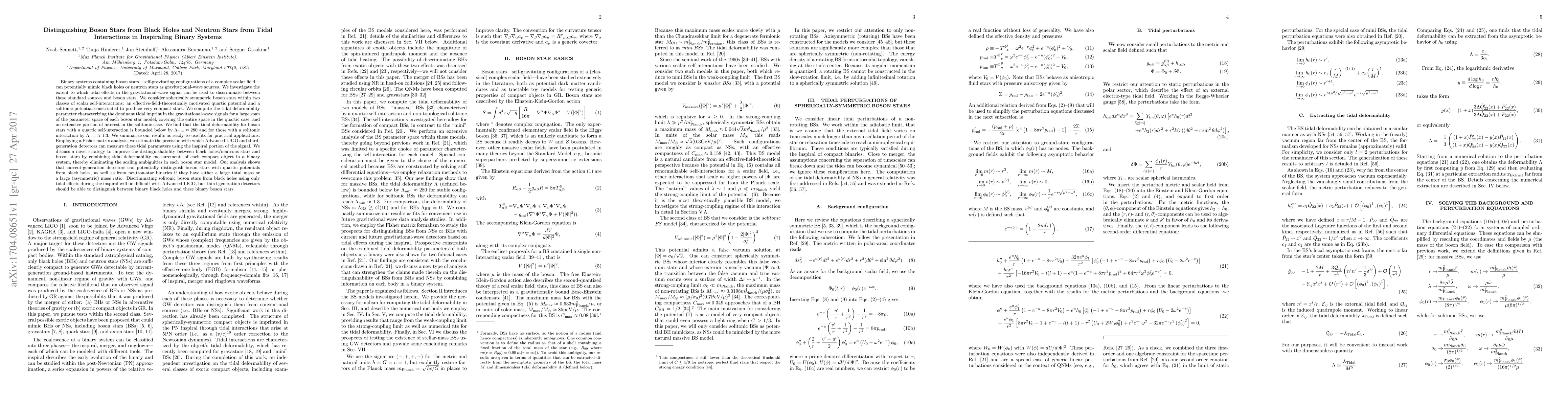 This paper explores the use of tidal interactions in gravitational wave signals to differentiate boson stars from black holes and neutron stars in binary systems. It finds that while current detectors can distinguish boson stars with quartic potentials from black holes, distinguishing solitonic boson stars will require third-generation detectors due to their lower tidal deformability.