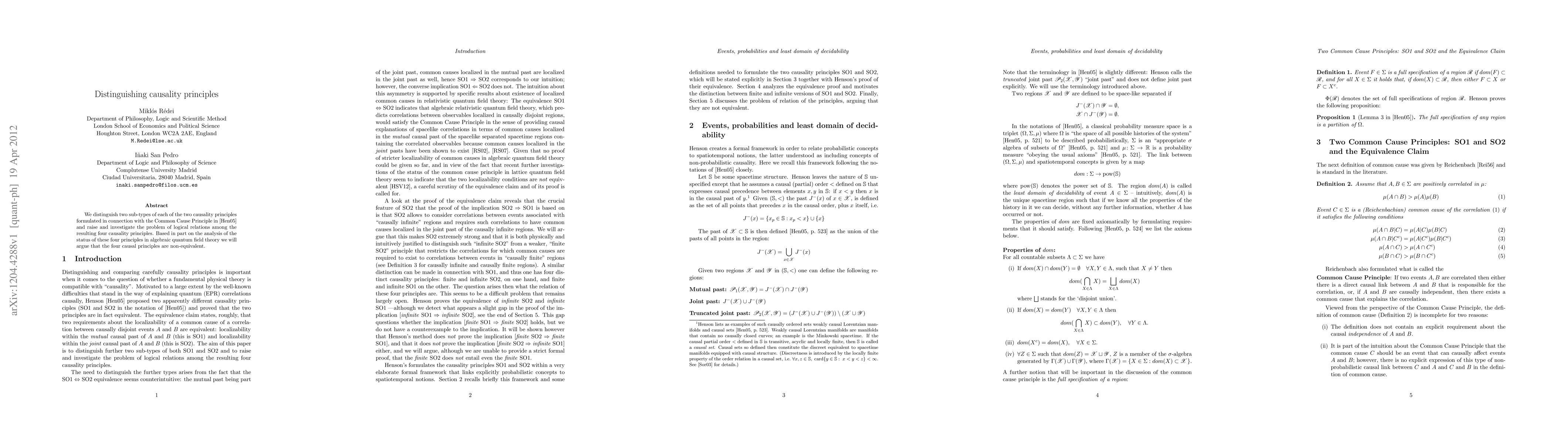 Researchers distinguish two sub-types of causality principles formulated in connection with the Common Cause Principle, arguing that four resulting principles are non-equivalent, with implications for algebraic quantum field theory.