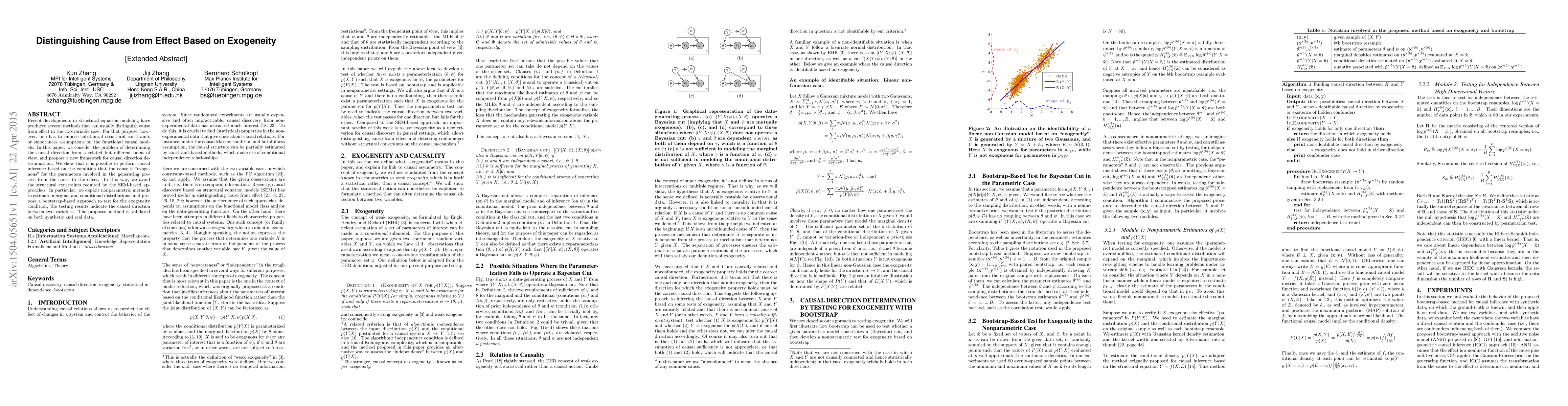 Recent developments in structural equation modeling have produced several methods that can usually distinguish cause from effect in the two-variable case. For that purpose, however, one has to impose substantial structural constraints or smoothness assumptions on the functional causal models. In this paper, we consider the problem of determining the causal direction from a related but different point of view, and propose a new framework for causal direction determination. We show that it is possible to perform causal inference based on the condition that the cause is "exogenous" for the parameters involved in the generating process from the cause to the effect. In this way, we avoid the structural constraints required by the SEM-based approaches. In particular, we exploit nonparametric methods to estimate marginal and conditional distributions, and propose a bootstrap-based approach to test for the exogeneity condition; the testing results indicate the causal direction between two variables. The proposed method is validated on both synthetic and real data.