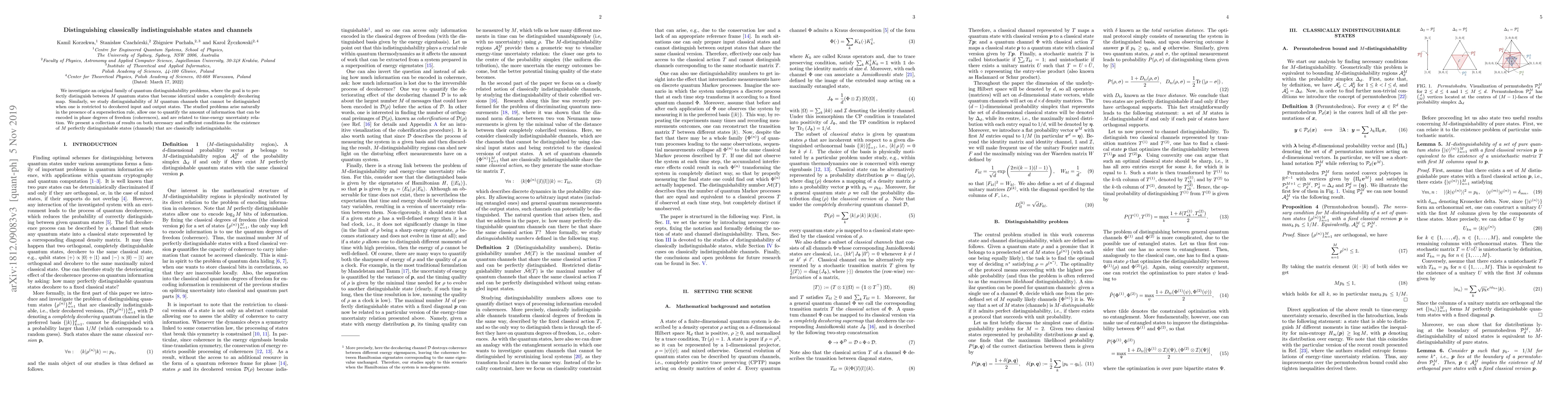 We investigate an original family of quantum distinguishability problems, where the goal is to perfectly distinguish between $M$ quantum states that become identical under a completely decohering map. Similarly, we study distinguishability of $M$ quantum channels that cannot be distinguished when one is restricted to decohered input and output states. The studied problems arise naturally in the presence of a superselection rule, allow one to quantify the amount of information that can be encoded in phase degrees of freedom (coherences), and are related to time-energy uncertainty relation. We present a collection of results on both necessary and sufficient conditions for the existence of $M$ perfectly distinguishable states (channels) that are classically indistinguishable.