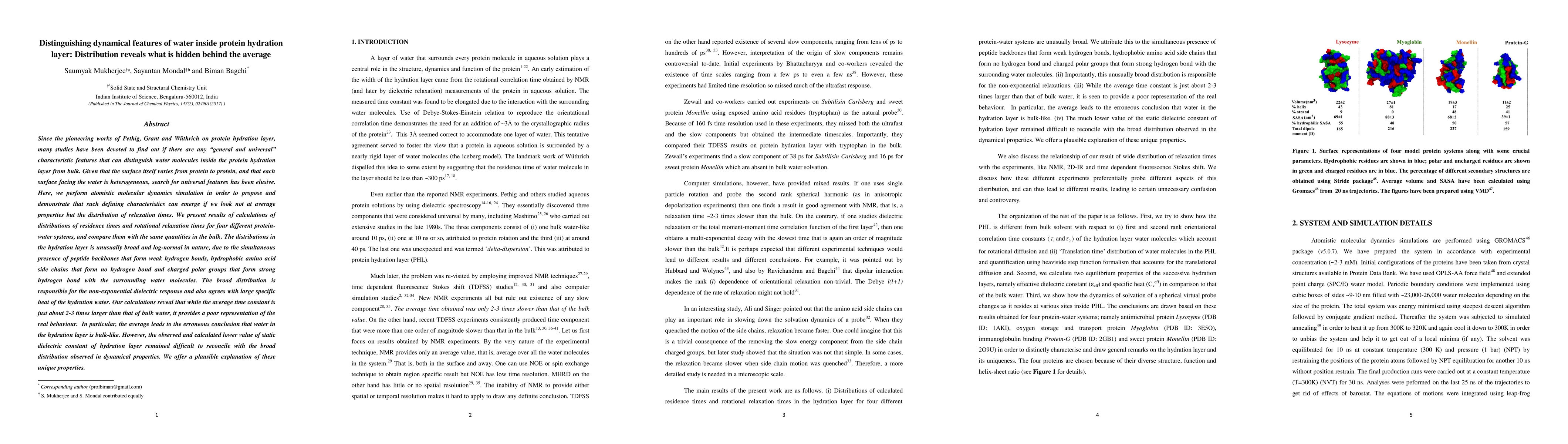 Since the pioneering works of Pethig, Grant and Wuthrich on protein hydration layer, many studies have been devoted to find out if there are any general and universal characteristic features that can distinguish water molecules inside the protein hydration layer from bulk. Given that the surface itself varies from protein to protein, and that each surface facing the water is heterogeneous, search for universal features has been elusive. Here, we perform atomistic molecular dynamics simulation in order to propose and demonstrate that such defining characteristics can emerge if we look not at average properties but the distribution of relaxation times. We present results of calculations of distributions of residence times and rotational relaxation times for four different protein-water systems, and compare them with the same quantities in the bulk. The distributions in the hydration layer is unusually broad and log-normal in nature, due to the simultaneous presence of peptide backbones that form weak hydrogen bonds, hydrophobic amino acid side chains that form no hydrogen bond and charged polar groups that form strong hydrogen bond with the surrounding water molecules. The broad distribution is responsible for the non-exponential dielectric response and also agrees with large specific heat of the hydration water. Our calculations reveal that while the average time constant is just about 2-3 times larger than that of bulk water, it provides a poor representation of the real behaviour. In particular, the average leads to the erroneous conclusion that water in the hydration layer is bulk-like. However, the observed and calculated lower value of static dielectric constant of hydration layer remained difficult to reconcile with the broad distribution observed in dynamical properties. We offer a plausible explanation of these unique properties.