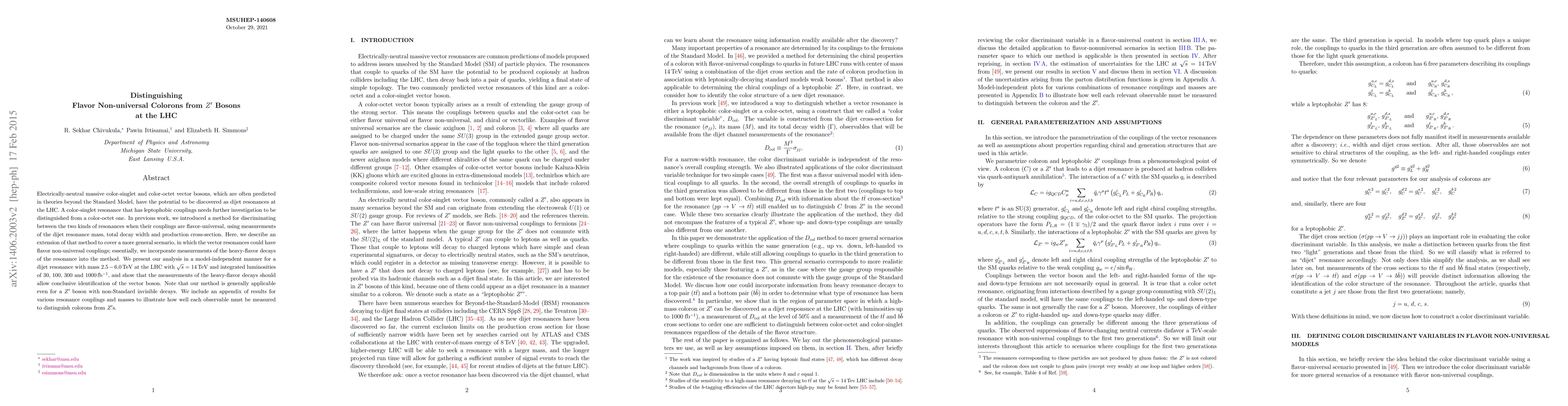 Electrically-neutral massive color-singlet and color-octet vector bosons, which are often predicted in Beyond the Standard Model theories, have the potential to be discovered as dijet resonances at the LHC. A color-singlet resonance that has leptophobic couplings needs further investigation to be distinguished from a color-octet one. In previous work, we introduced a method for discriminating between the two kinds of resonances when their couplings are flavor-universal, using measurements of the dijet resonance mass, total decay width and production cross-section. Here, we describe an extension of that method to cover a more general scenario, in which the vector resonances could have flavor non-universal couplings; essentially, we incorporate measurements of the heavy-flavor decays of the resonance into the method. We present our analysis in a model-independent manner for a dijet resonance with mass 2.5-6.0 TeV at the LHC with $\sqrt{s}=14$ TeV and integrated luminosities 30, 100, 300 and 1000 ${\rm fb}^{-1}$, and show that the measurements of the heavy-flavor decays should allow conclusive identification of the vector boson. Note that our method is generally applicable even for a Z' boson with non-Standard invisible decays. We include an appendix of results for various resonance couplings and masses to illustrate how well each observable must be measured to distinguish colorons from Z' bosons.