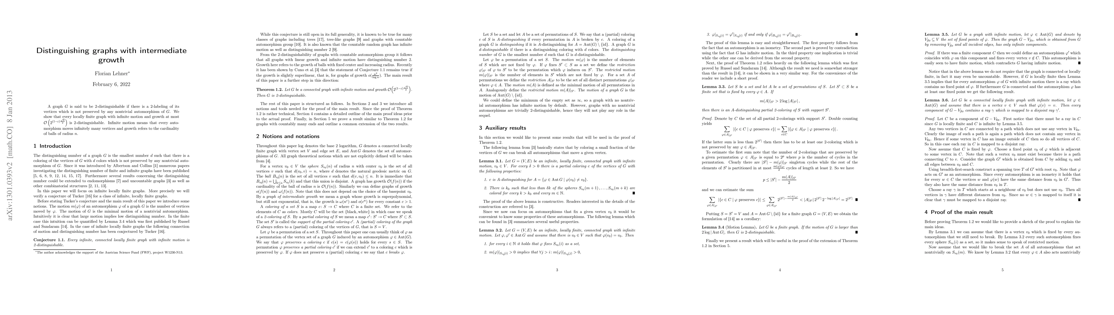 This paper demonstrates that any locally finite graph with infinite motion and growth rate O(2^((1-\varepsilon) \sqrt(n)/2)) for sufficiently small ε is 2-distinguishable, meaning it can be uniquely labeled in such a way that no nontrivial automorphism preserves the labeling.