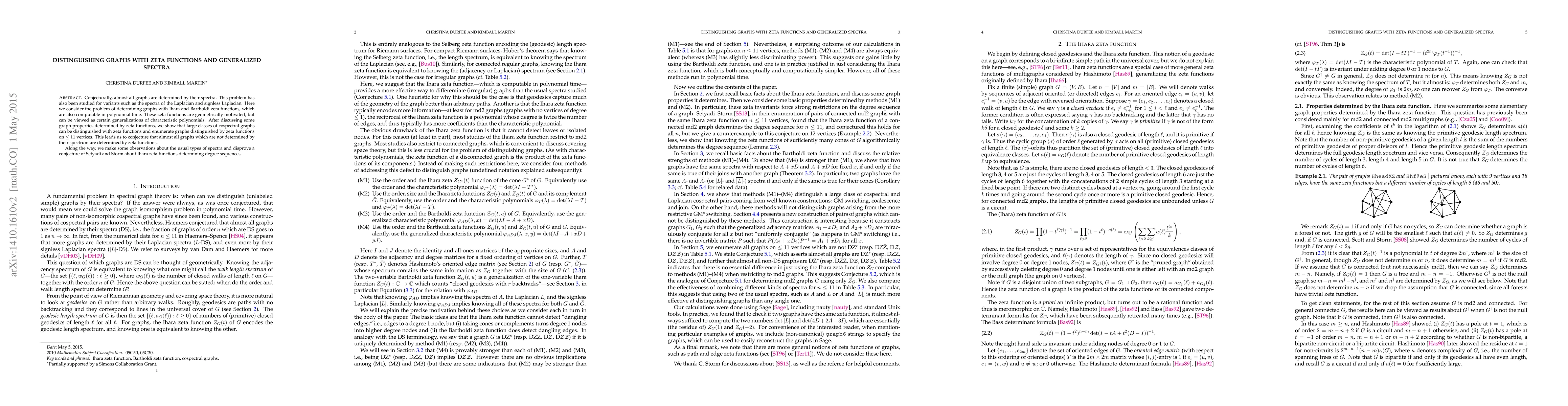 This paper explores the conjecture that almost all graphs can be distinguished by their Ihara and Bartholdi zeta functions, which generalize characteristic polynomials. The authors demonstrate that large classes of cospectral graphs can be differentiated using these zeta functions and enumerate such graphs for up to 11 vertices, supporting their conjecture.