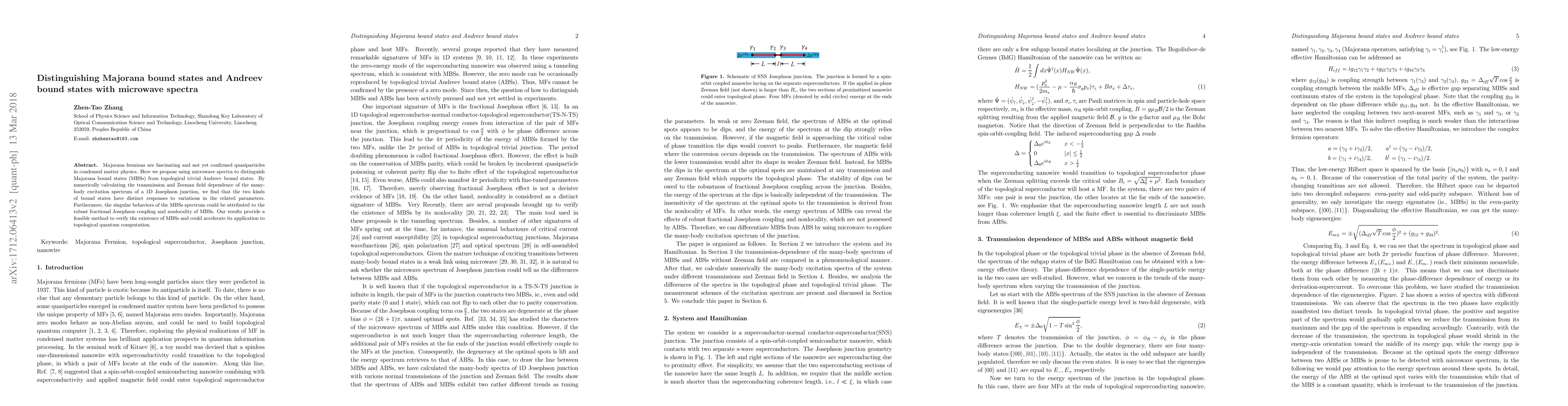 A 1D Josephson junction system was studied using numerical methods to calculate the transmission and Zeeman field dependence of its many-body spectrum.