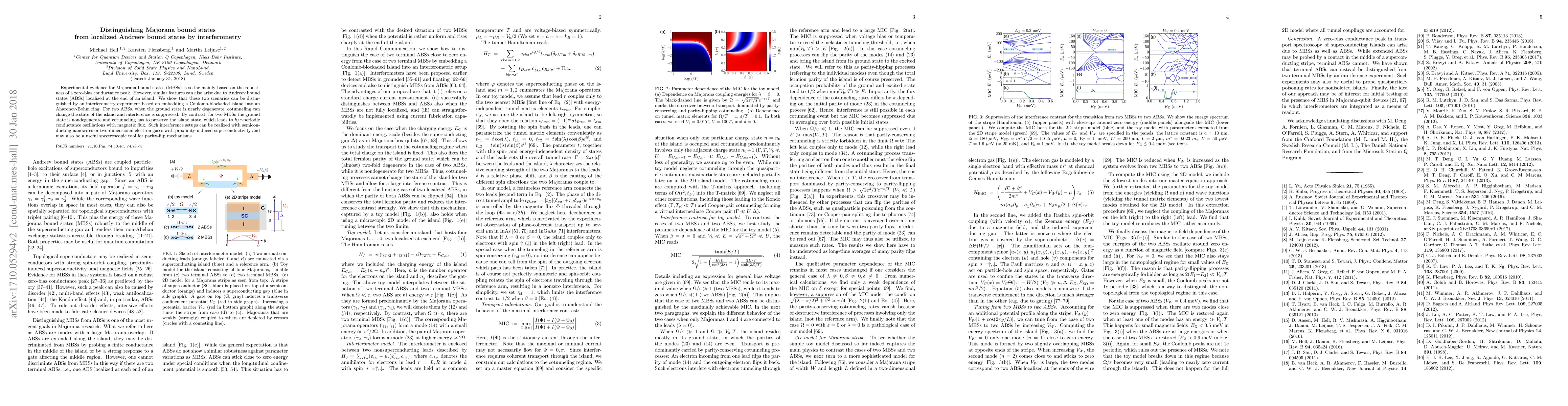 This paper proposes an interferometry experiment using an Aharonov-Bohm ring to distinguish between Majorana bound states (MBSs) and localized Andreev bound states (ABSs) based on conductance oscillations with magnetic flux, highlighting the nondegenerate ground state in MBSs versus the nearly degenerate state in ABSs.