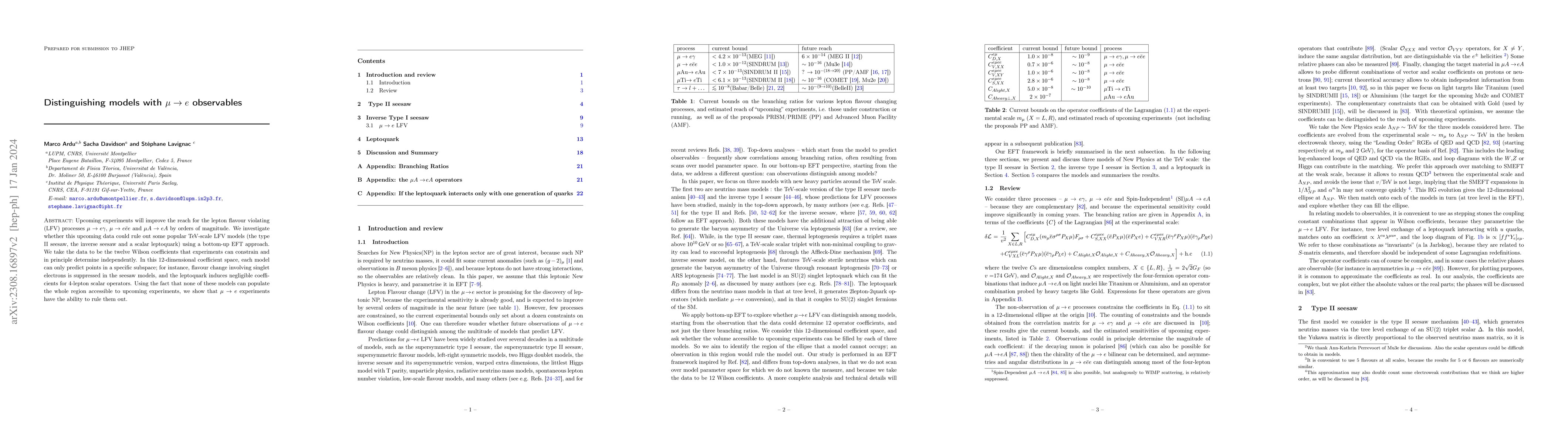 Upcoming experiments will improve the reach for the lepton flavour violating (LFV) processes $\mu \to e \gamma$, $\mu \to e \bar{e} e$ and $\mu A \to e A$ by orders of magnitude. We investigate whether this upcoming data could rule out some popular TeV-scale LFV models (the type II seesaw, the inverse seesaw and a scalar leptoquark) using a bottom-up EFT approach involving twelve Wilson coefficients that can in principle all be determined by experimental measurements. In this 12-dimensional coefficient space, each model can only predict points in a specific subspace; for instance, flavour change involving singlet electrons is suppressed in the seesaw models, and the leptoquark induces negligible coefficients for 4-lepton scalar operators. Using the fact that none of these models can populate the whole region accessible to upcoming experiments, we show that $\mu \to e$ experiments have the ability to rule them out.