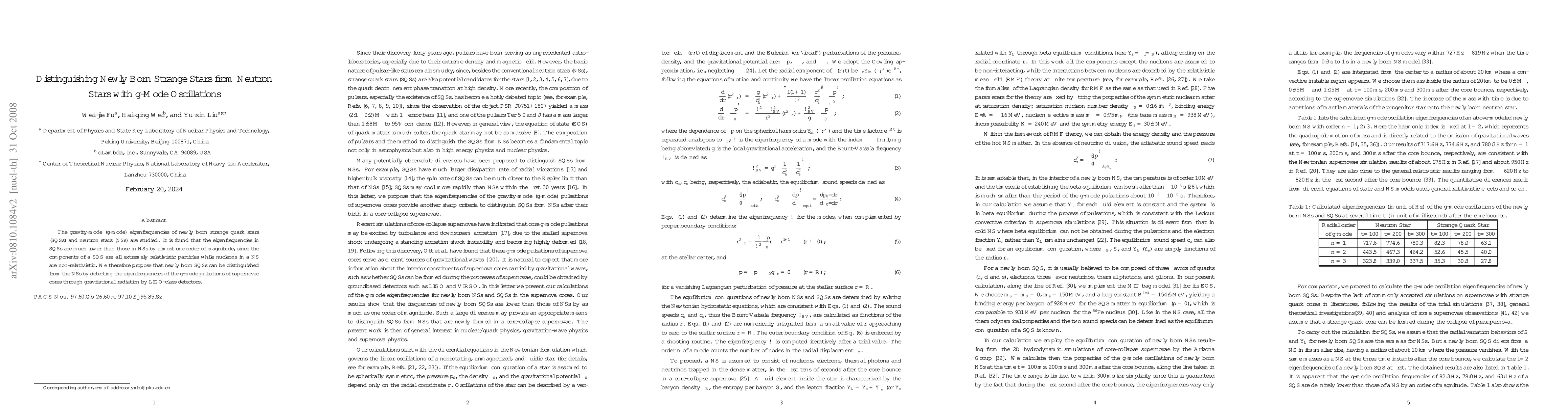 This paper investigates the gravity-mode oscillations of newly born strange quark stars (SQSs) and neutron stars (NSs), finding that SQSs exhibit significantly lower eigenfrequencies due to the relativistic nature of their components. It proposes that distinguishing SQSs from NSs can be achieved by detecting these g-mode pulsations via gravitational radiation using LIGO-class detectors.