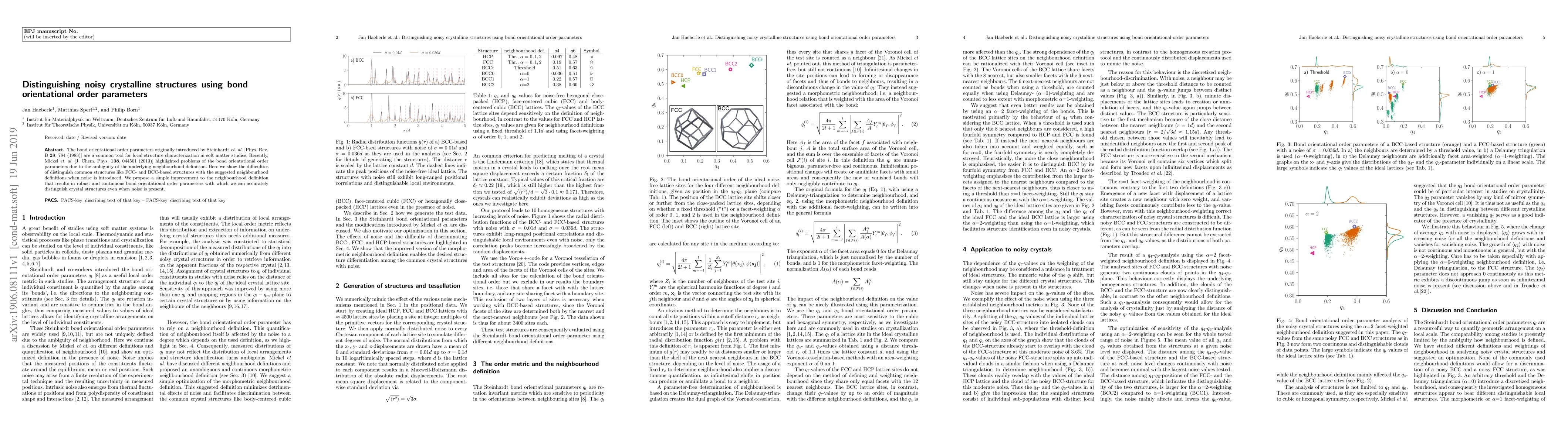 This paper discusses the limitations of bond orientational order parameters in distinguishing noisy crystalline structures, particularly FCC and BCC types, due to ambiguities in neighborhood definitions. The authors propose an improved neighborhood definition to create robust and continuous order parameters that can accurately differentiate crystal structures despite noise.
