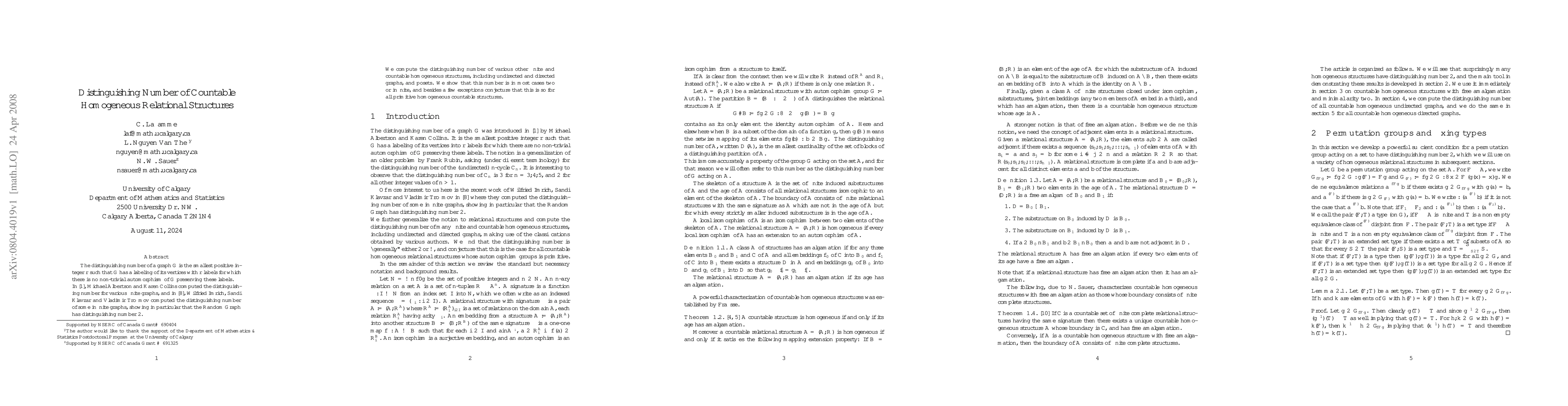 The paper computes the distinguishing number for various countable homogeneous relational structures, finding that it is typically either 2 or infinite, with a conjecture that this holds for most primitive structures. Exceptions are noted, but the general trend is established.