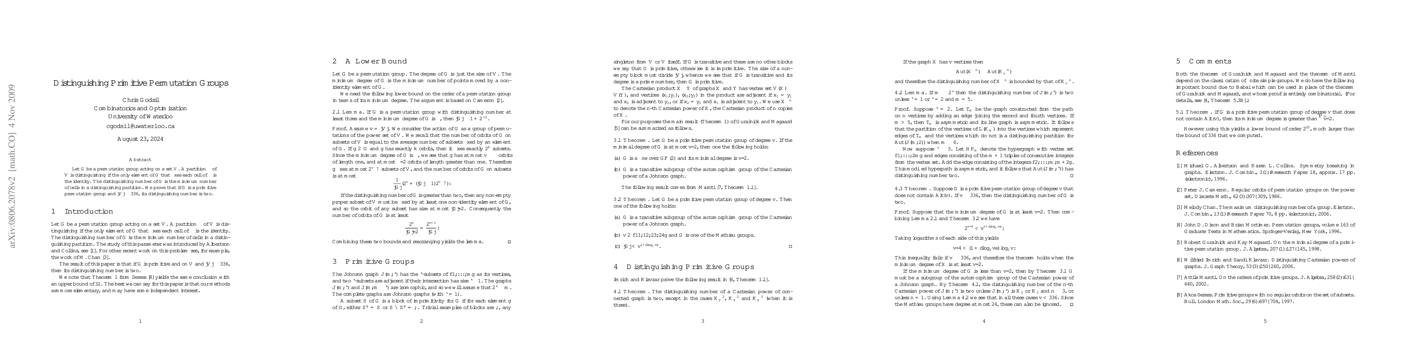 This paper proves that for any primitive permutation group $G$ acting on a set $V$ with $|V| \geq 336$, the minimum number of cells in a distinguishing partition is two. This implies that any such group can be distinguished by a partition with just two cells.
