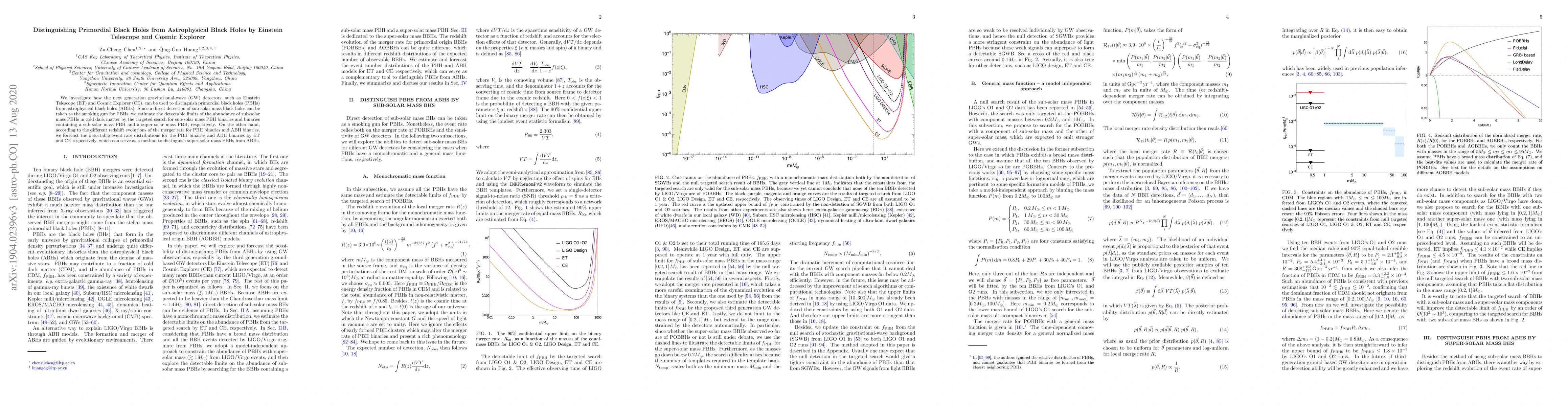 We investigate how the next generation gravitational-wave (GW) detectors, such as Einstein Telescope (ET) and Cosmic Explorer (CE), can be used to distinguish primordial black holes (PBHs) from astrophysical black holes (ABHs). Since a direct detection of sub-solar mass black holes can be taken as the smoking gun for PBHs, we figure out the detectable limits of the abundance of sub-solar mass PBHs in cold dark matter by the targeted search for sub-solar mass PBH binaries and binaries containing a sub-solar mass PBH and a super-solar mass PBH, respectively. On the other hand, according to the different redshift evolutions of merger rate for PBH binaries and ABH binaries, we forecast the detectable event rate distributions for the PBH binaries and ABH binaries by ET and CE respectively, which can serve as a method to distinguish super-solar mass PBHs from ABHs.