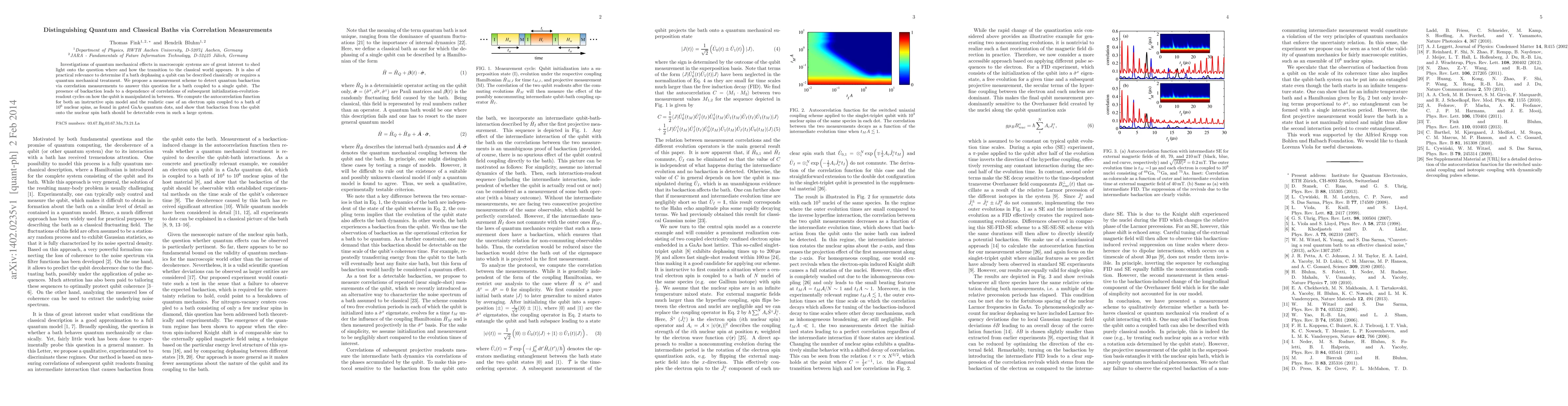 Investigations of quantum mechanical effects in macroscopic systems are of great interest to shed light onto the question where and how the transition to the classical world appears. It is also of practical relevance to determine if a bath dephasing a qubit can be described classically or requires a quantum mechanical treatment. We propose a measurement scheme to detect quantum backaction via correlation measurements to answer this question for a bath coupled to a single qubit. The presence of backaction leads to a dependence of correlations of subsequent initialization-evolution-readout cycles on how the qubit is manipulated in between. We compute the autocorrelation function for both an instructive spin model and the realistic case of an electron spin coupled to a bath of $10^6$ nuclear spins, as found in gated GaAs quantum dots, and show that backaction from the qubit onto the nuclear spin bath should be detectable even in such a large system.