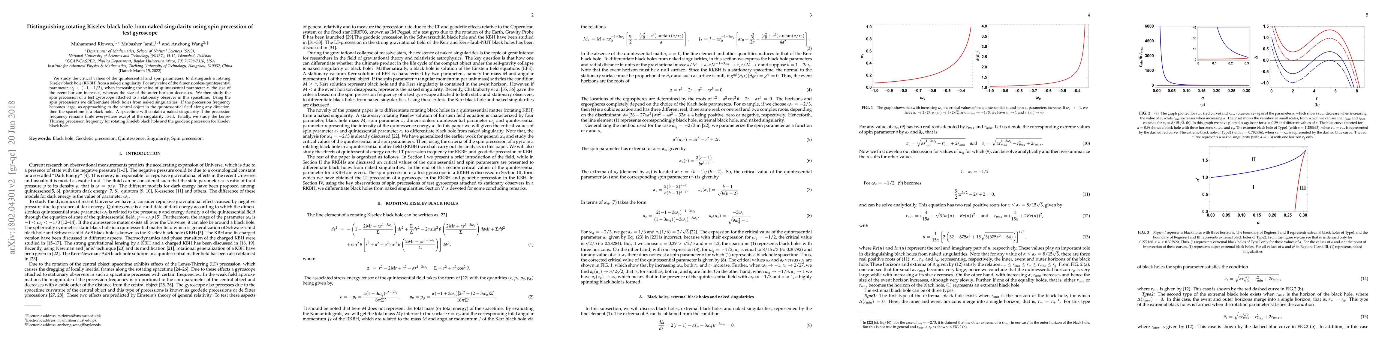 This paper investigates the spin precession of test gyroscopes to distinguish a rotating Kiselev black hole from a naked singularity. It finds that the precession frequency becomes large near the event horizon of a black hole, while remaining finite in a spacetime with a naked singularity, aiding in the differentiation between the two.