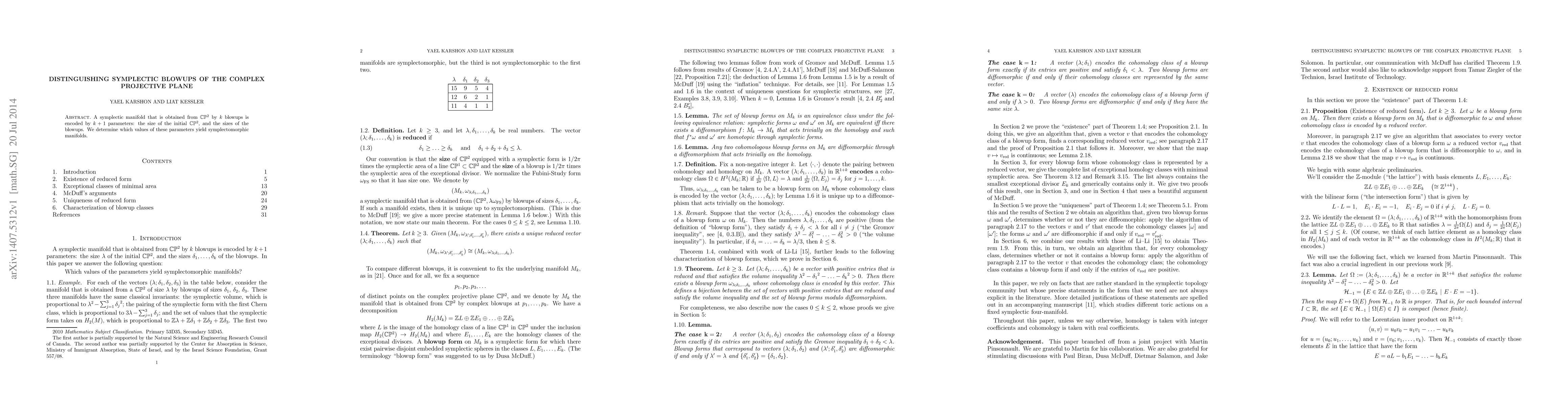 This paper identifies the parameters defining symplectic blowups of the complex projective plane and determines the conditions under which these blowups result in symplectomorphic manifolds. The study reveals the precise values of these parameters that ensure distinct symplectic structures.