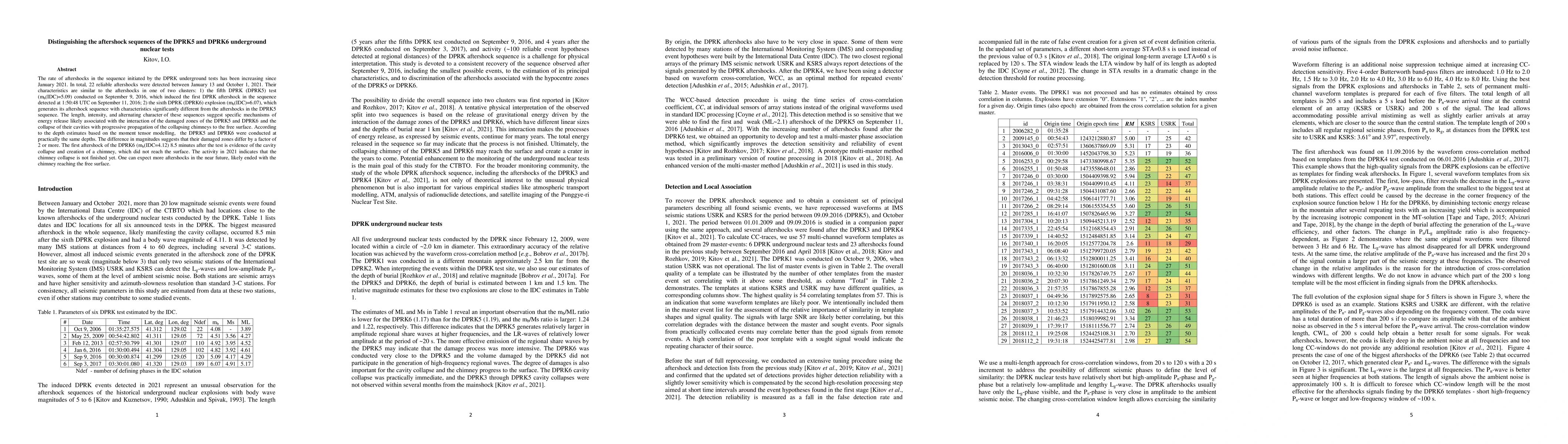 Researchers have identified two distinct aftershock sequences from North Korea's underground nuclear tests, DPRK5 and DPRK6, with different characteristics suggesting varying damaged zones and energy release mechanisms.