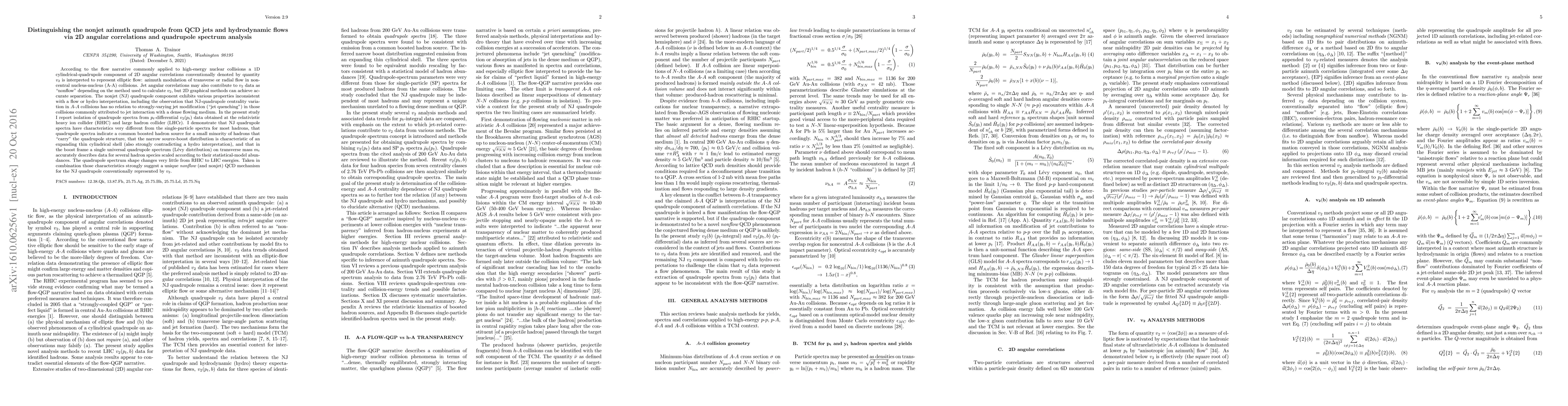 According to the flow narrative commonly applied to high-energy nuclear collisions a 1D cylindrical-quadrupole component of 2D angular correlations conventionally denoted by quantity $v_2$ is interpreted to represent elliptic flow: azimuth modulation of transverse or radial flow in noncentral nucleus-nucleus (A-A) collisions. The nonjet (NJ) quadrupole component exhibits various properties inconsistent with a flow or hydro interpretation, including the observation that NJ-quadrupole centrality variation in $A$-$A$ collisions has no relation to strongly-varying jet modification ("jet quenching") in those collisions commonly attributed to jet interaction with a dense flowing medium. In the present study I report isolation of quadrupole spectra from $p_t$-differential $v_2(p_t)$ data obtained at the relativistic heavy ion collider (RHIC) and large hadron collider (LHCr). I demonstrate that NJ quadrupole spectra have characteristics very different from the single-particle spectra for most hadrons, that quadrupole spectra indicate a common boosted hadron source for a small minority of hadrons that "carry" the quadrupole structure, that the narrow source-boost distribution is characteristic of an expanding thin cylindrical shell (also strongly contradicting a hydro interpretation), and that in the boost frame a single universal quadrupole spectrum (L\'evy distribution) on transverse mass $m_t$ accurately describes data for several hadron species scaled according to their statistical-model abundances. The quadrupole spectrum shape changes very little from RHIC to LHC energies. Taken in combination those characteristics strongly suggest a unique {\em nonflow} (and nonjet) QCD mechanism for the NJ quadrupole conventionally represented by $v_2$.