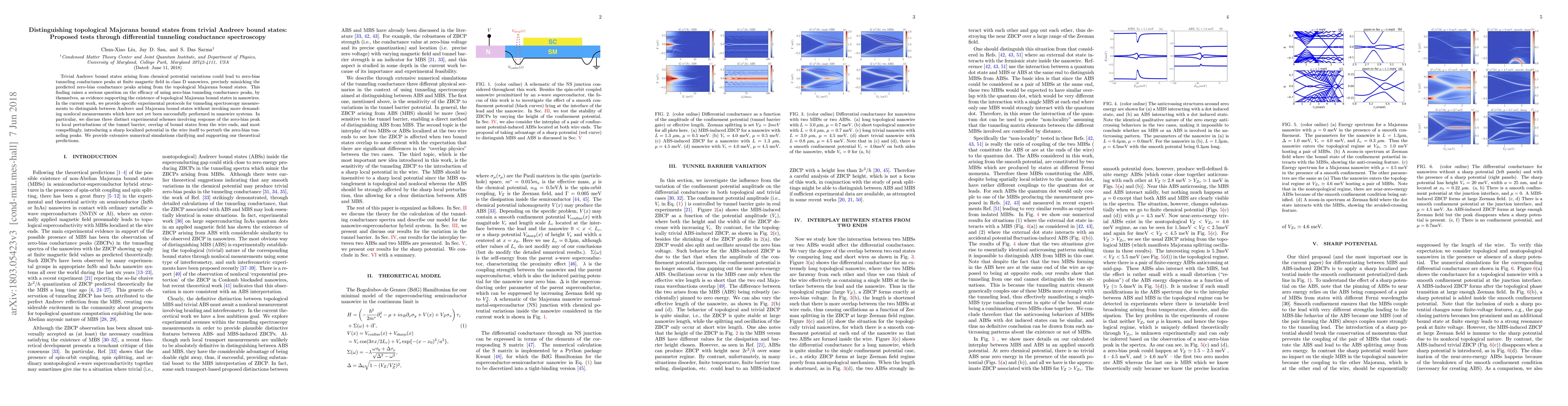 Trivial Andreev bound states arising from chemical potential variations could lead to zero-bias tunneling conductance peaks at finite magnetic fields in class $D$ nanowires, precisely mimicking the predicted zero-bias conductance peaks arising from the topological Majorana bound states. This finding raises a serious question on the efficacy of using zero-bias tunneling conductance peaks, by themselves, as evidence supporting the existence of topological Majorana bound states in nanowires. In the current work, we provide specific experimental protocols for tunneling spectroscopy measure- ments to distinguish between Andreev and Majorana bound states without invoking more demand- ing nonlocal measurements which have not yet been successfully performed in nanowire systems. In particular, we discuss three distinct experimental schemes involving response of the zero-bias peak to local perturbations of the tunnel barrier, overlap of bound states from the wire ends, and most compellingly, introducing a sharp localized potential in the wire itself to perturb the zero-bias tun- neling peaks. We provide extensive numerical simulations clarifying and supporting our theoretical predictions.