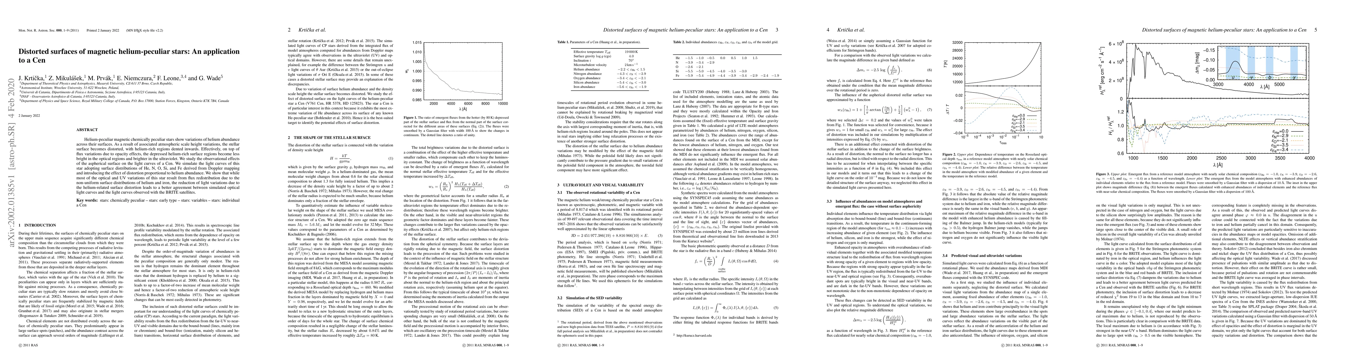 This study models how surface distortions caused by helium abundance variations affect the brightness of magnetic helium-peculiar stars like a Cen, showing that accounting for these distortions improves agreement with observed light curves. The findings highlight the importance of surface shape changes, alongside chemical distributions, in understanding stellar brightness variations.