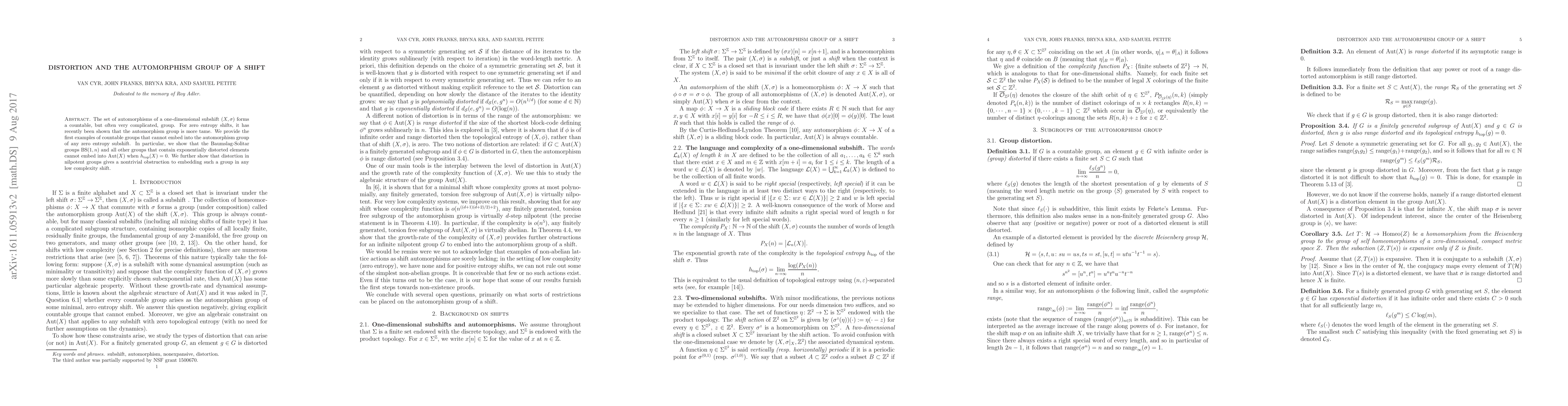 This paper explores the automorphism group of zero entropy shifts, revealing that certain countable groups, such as Baumslag-Solitar groups ${\rm BS}(1,n)$ and those with exponentially distorted elements, cannot be embedded within the automorphism group of any zero entropy shift. It highlights that distortion in nilpotent groups acts as a significant obstruction to embedding in low complexity shifts.