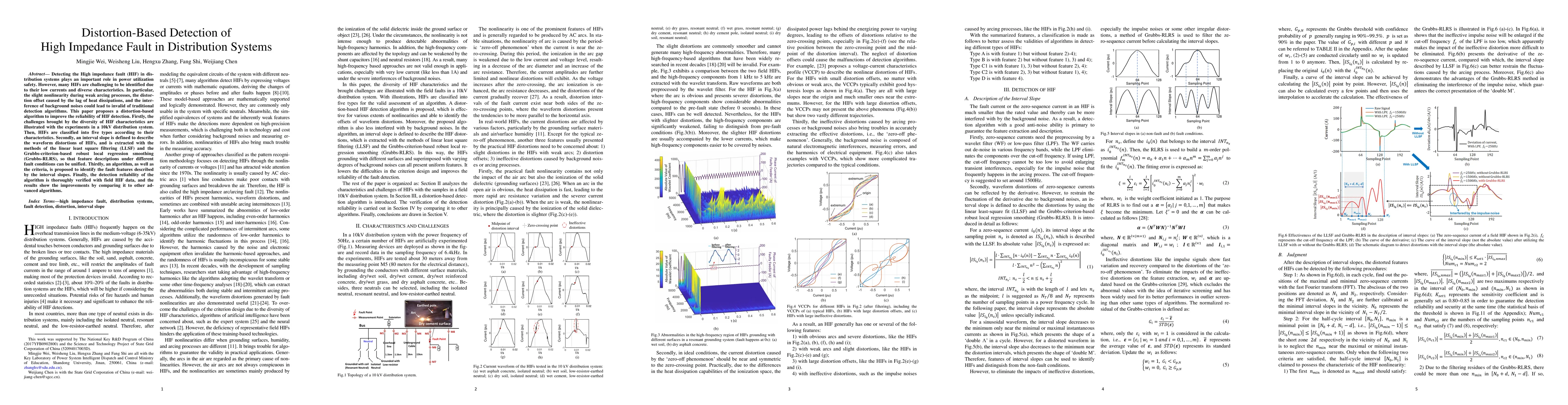 The paper introduces an interval slope-based distortion detection method for HIFs, combining LLSF and Grubbs-RLRS for robust feature extraction.