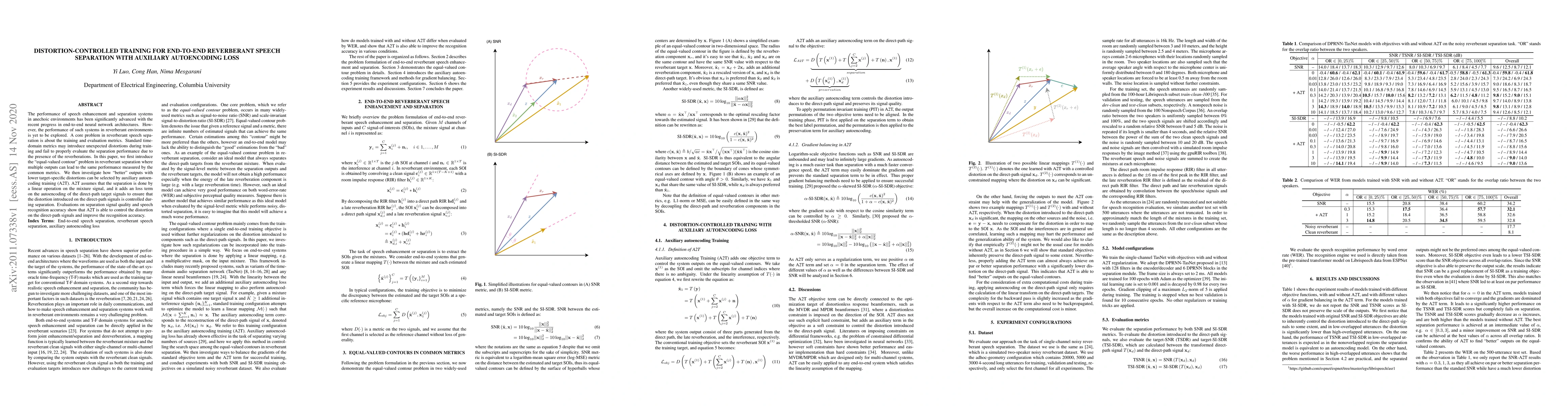 This paper proposes an auxiliary autoencoding training (A2T) method to enhance end-to-end reverberant speech separation by controlling distortions on the direct-path signals. The A2T approach improves separation performance by ensuring lower target-specific distortions, leading to better speech recognition accuracy.