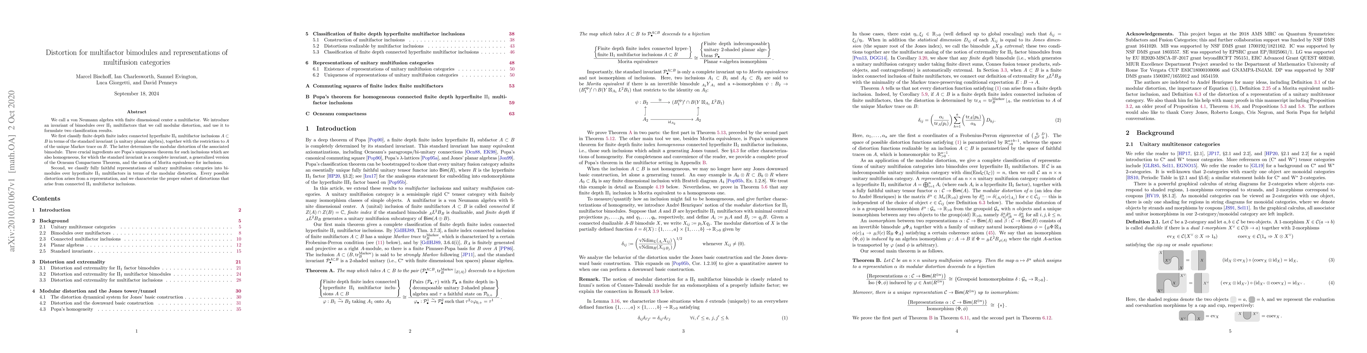 We call a von Neumann algebra with finite dimensional center a multifactor. We introduce an invariant of bimodules over $\rm II_1$ multifactors that we call modular distortion, and use it to formulate two classification results. We first classify finite depth finite index connected hyperfinite $\rm II_1$ multifactor inclusions $A\subset B$ in terms of the standard invariant (a unitary planar algebra), together with the restriction to $A$ of the unique Markov trace on $B$. The latter determines the modular distortion of the associated bimodule. Three crucial ingredients are Popa's uniqueness theorem for such inclusions which are also homogeneous, for which the standard invariant is a complete invariant, a generalized version of the Ocneanu Compactness Theorem, and the notion of Morita equivalence for inclusions. Second, we classify fully faithful representations of unitary multifusion categories into bimodules over hyperfinite $\rm II_1$ multifactors in terms of the modular distortion. Every possible distortion arises from a representation, and we characterize the proper subset of distortions that arise from connected $\rm II_1$ multifactor inclusions.