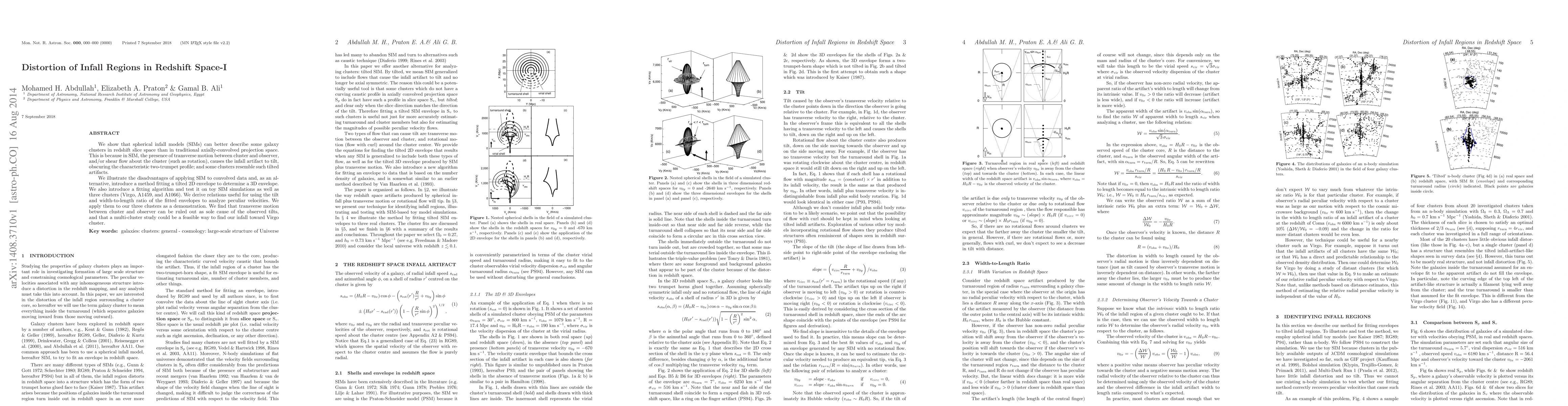 New research finds that galaxy clusters in redshift space can appear distorted due to transverse motion and shear flow, leading to a better fit of spherical infall models when analyzing data in 3D envelope space.