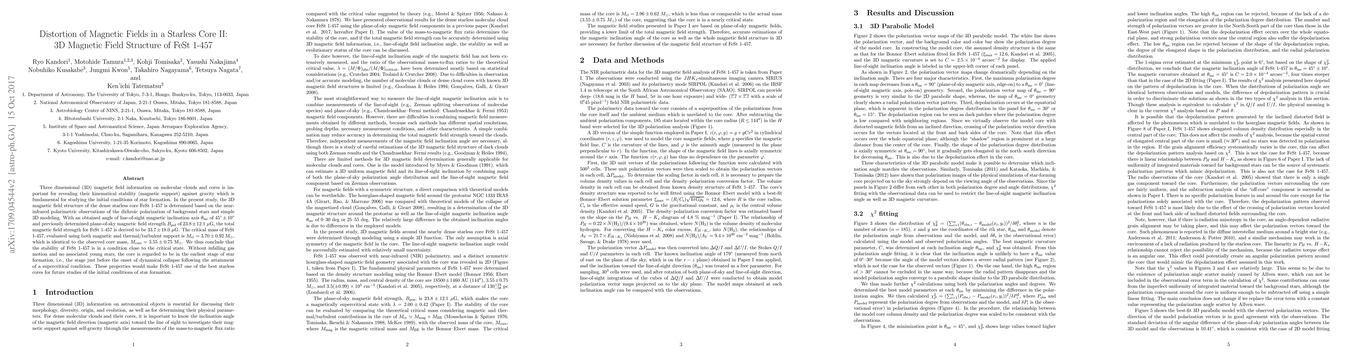 This study determines the 3D magnetic field structure of the starless core FeSt 1-457 using near-infrared polarimetry, revealing a magnetic inclination angle of $45^{\circ}\pm10^{\circ}$ and a total magnetic field strength of $33.7\pm18.0$ $\mu{\rm G}$. The core's critical mass matches its observed mass, indicating it is near the critical state for star formation.
