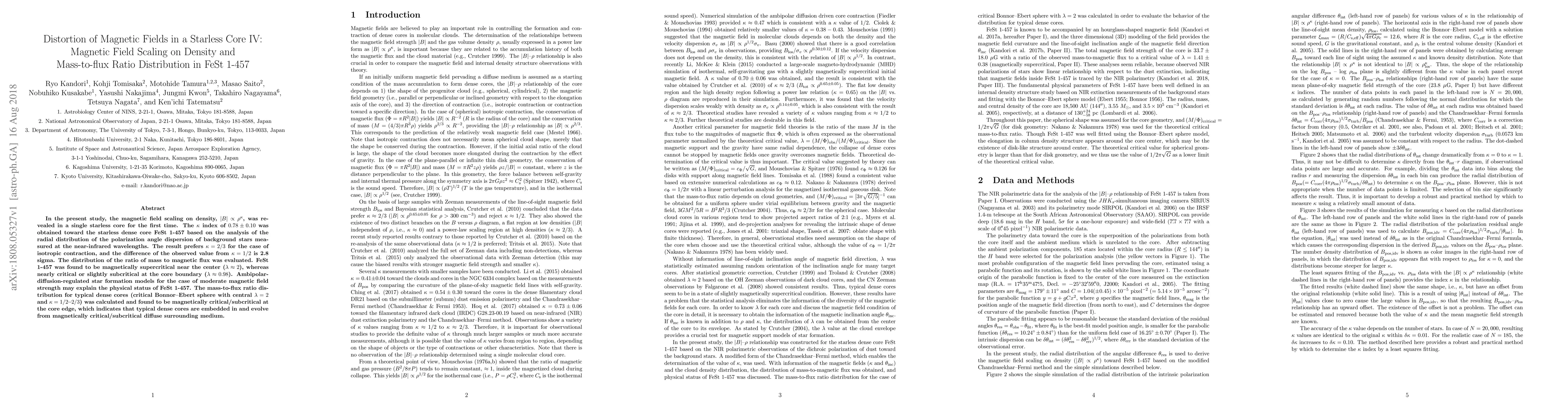 This study reveals the magnetic field scaling $\kappa = 0.78 \pm 0.10$ in the starless core FeSt 1-457, suggesting it is magnetically supercritical near the center and nearly critical at the boundary. The findings support models of star formation regulated by ambipolar diffusion.