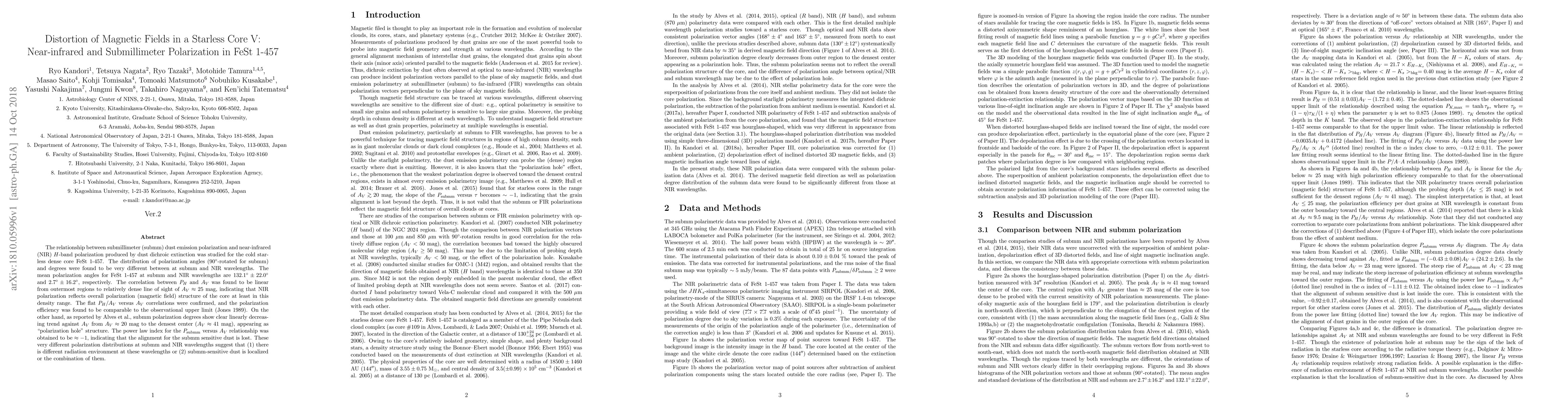 This paper investigates the polarization of submillimeter and near-infrared emissions in the starless core FeSt 1-457, revealing distinct polarization angles and degrees between these wavelengths. NIR polarization reflects the overall magnetic field structure, while submm polarization shows a "polarization hole" indicating lost alignment of submm-sensitive dust.