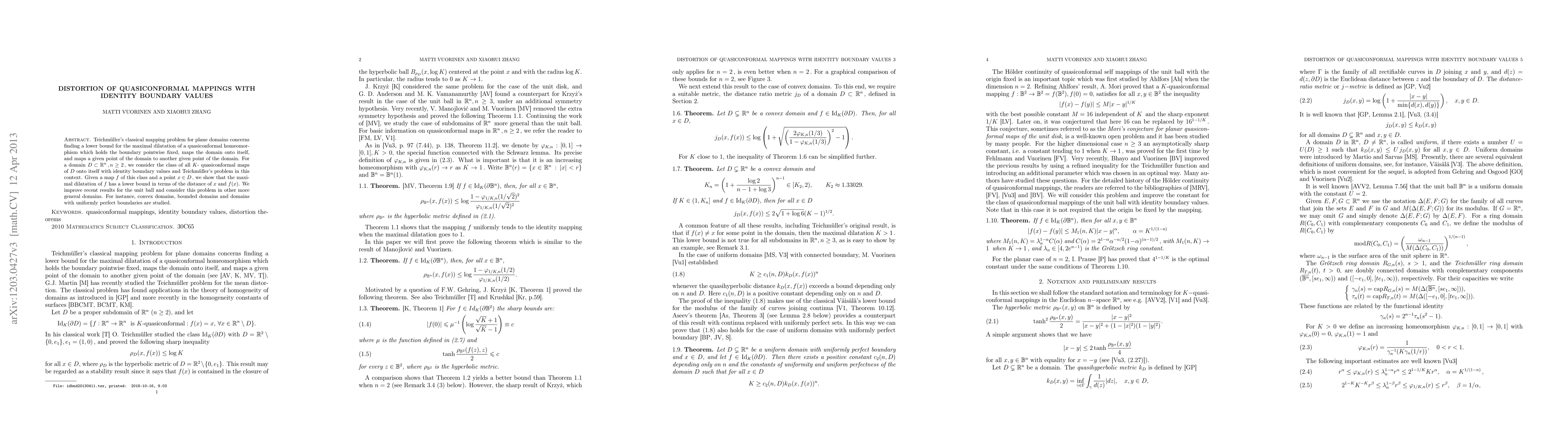 Teichm\"uller's classical mapping problem for plane domains concerns finding a lower bound for the maximal dilatation of a quasiconformal homeomorphism which holds the boundary pointwise fixed, maps the domain onto itself, and maps a given point of the domain to another given point of the domain. For a domain $D \subset {\mathbb R}^n\,,n\ge 2\,,$ we consider the class of all $K$- quasiconformal maps of $D$ onto itself with identity boundary values and Teichm\"uller's problem in this context. Given a map $f$ of this class and a point $x\in D\,,$ we show that the maximal dilatation of $f$ has a lower bound in terms of the distance of $x$ and $f(x)$ in the distance ratio metric. For instance, convex domains, bounded domains and domains with uniformly perfect boundaries are studied.