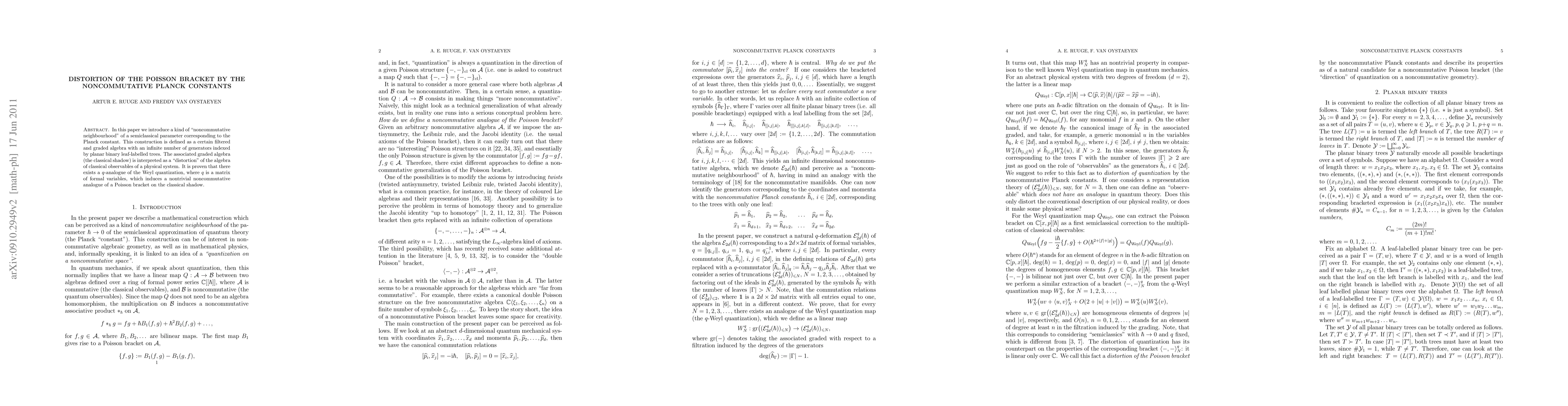 In this paper we introduce a kind of "noncommutative neighbourhood" of a semiclassical parameter corresponding to the Planck constant. This construction is defined as a certain filtered and graded algebra with an infinite number of generators indexed by planar binary leaf-labelled trees. The associated graded algebra (the classical shadow) is interpreted as a "distortion" of the algebra of classical observables of a physical system. It is proven that there exists a q-analogue of the Weyl quantization, where q is a matrix of formal variables, which induces a nontrivial noncommutative analogue of a Poisson bracket on the classical shadow.