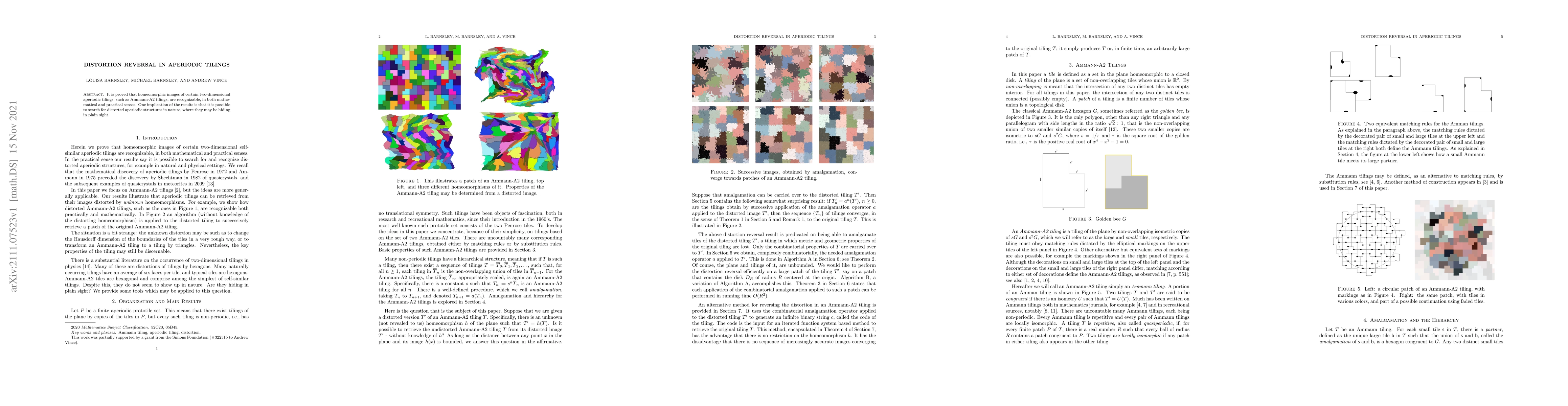 It is proved that homeomorphic images of certain two-dimensional aperiodic tilings, such as Ammann-A2 tilings, are recognizable, in both mathematical and practical senses. One implication of the results is that it is possible to search for distorted aperiodic structures in nature, where they may be hiding in plain sight.