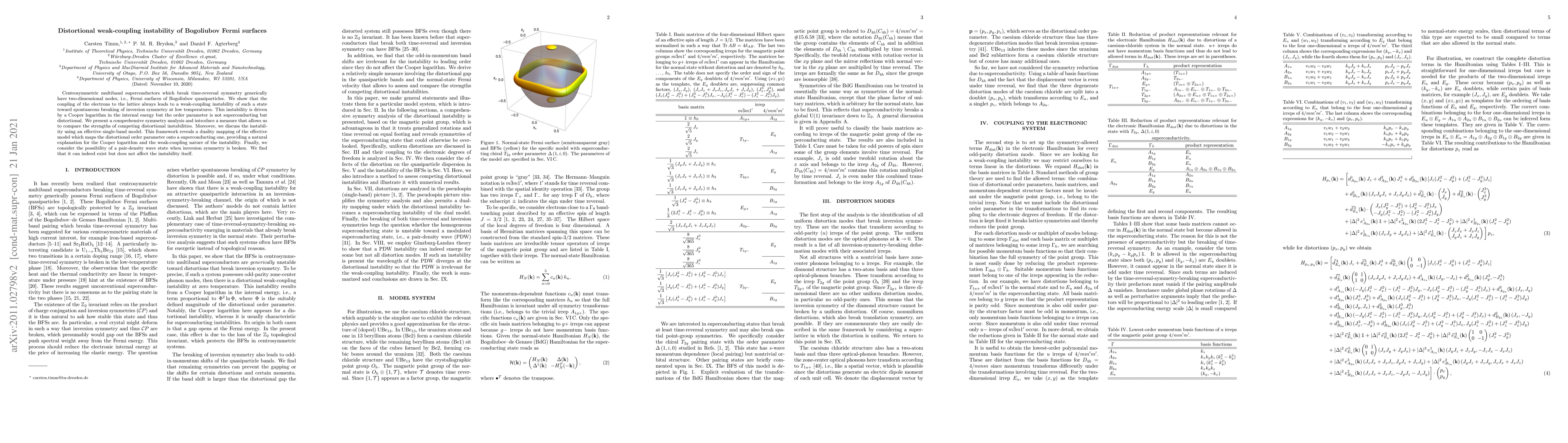 The research distinguishes itself by identifying a universal distortional weak-coupling instability in centrosymmetric multiband superconductors, explaining its characteristics through a Cooper logarithm and duality mapping, which contrasts with previously studied instabilities.