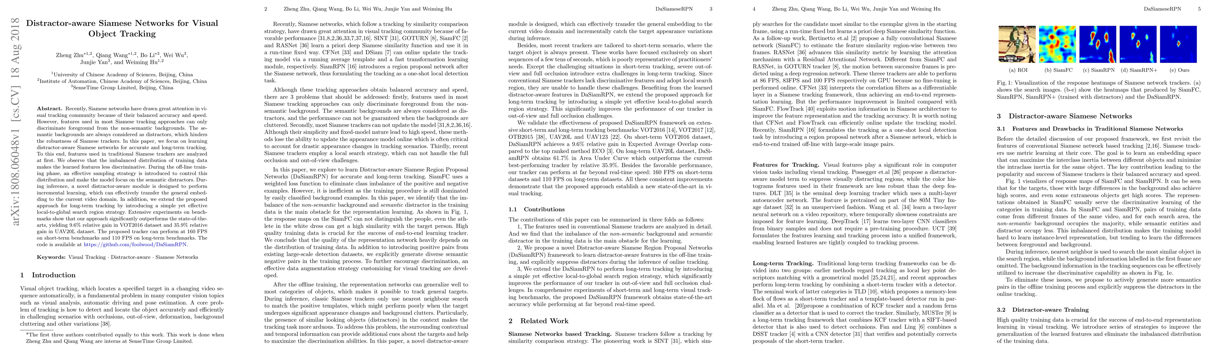 This paper proposes a distractor-aware Siamese network for visual object tracking, enhancing feature learning to better discriminate semantic distractors. It introduces an effective sampling strategy during training and a distractor-aware module for incremental learning during inference, achieving significant performance gains over state-of-the-art methods.