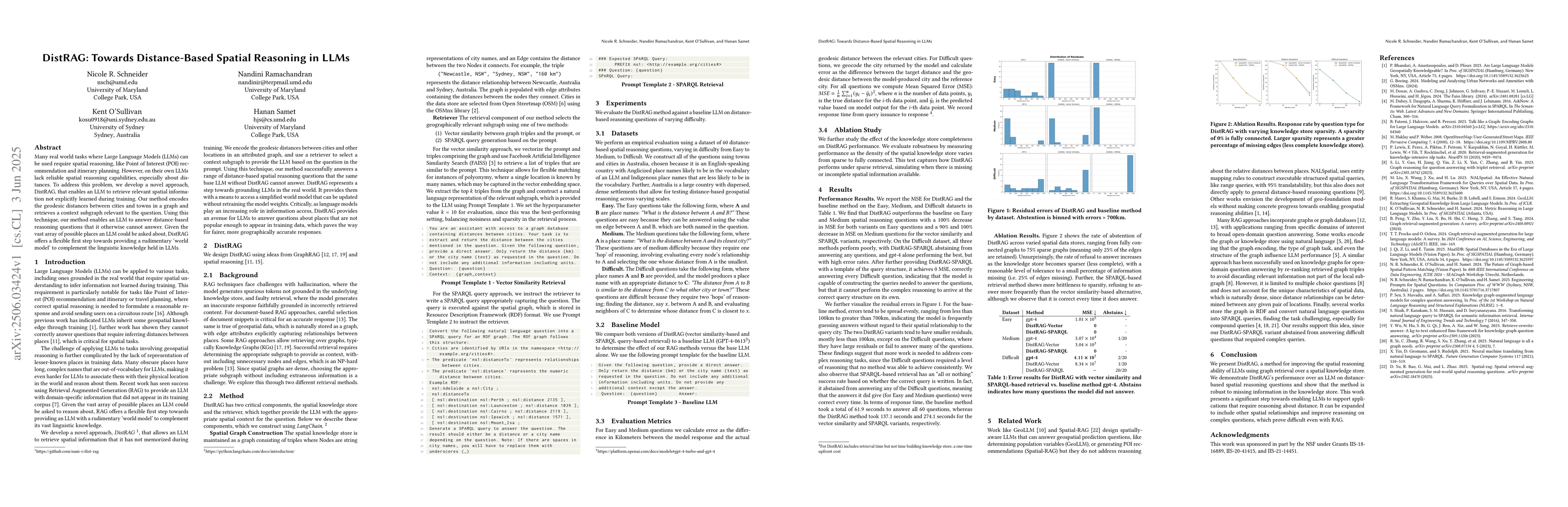 DistRAG presents a novel technique for integrating distance-based spatial information into LLMs, facilitating their ability to perform spatial reasoning tasks.