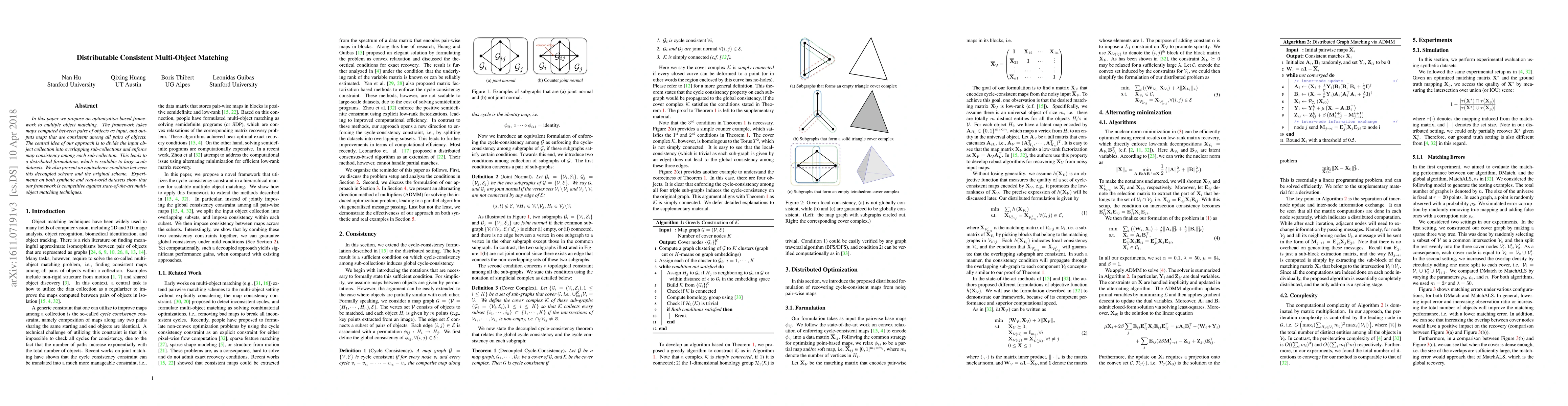 This paper introduces an optimization-based framework for multi-object matching, dividing object collections into overlapping subsets to ensure consistent map outputs. It presents a distributed formulation scalable for large datasets and proves equivalence with the original scheme. Experiments demonstrate competitiveness with existing multi-object matching techniques.