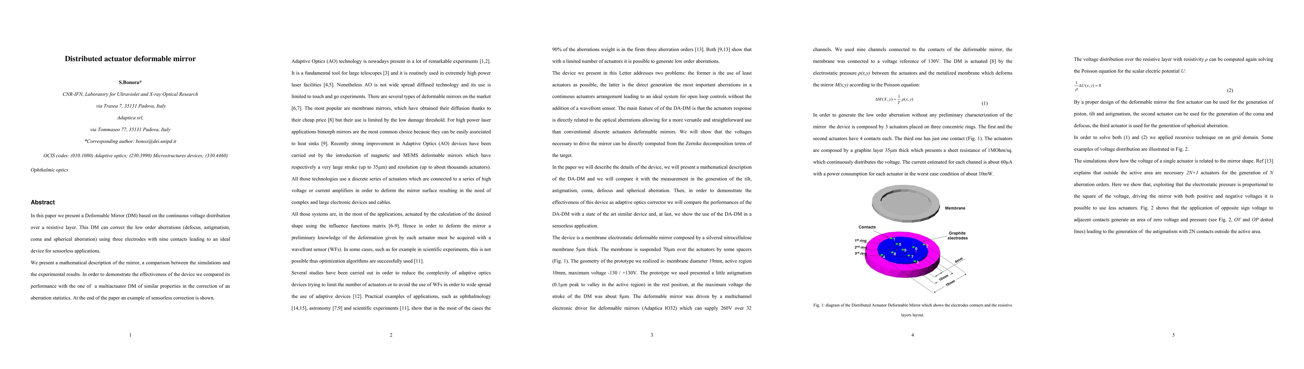 A new Deformable Mirror technology corrects optical aberrations using a continuous voltage distribution, offering improved performance and sensorless capabilities over existing multiactuator devices.