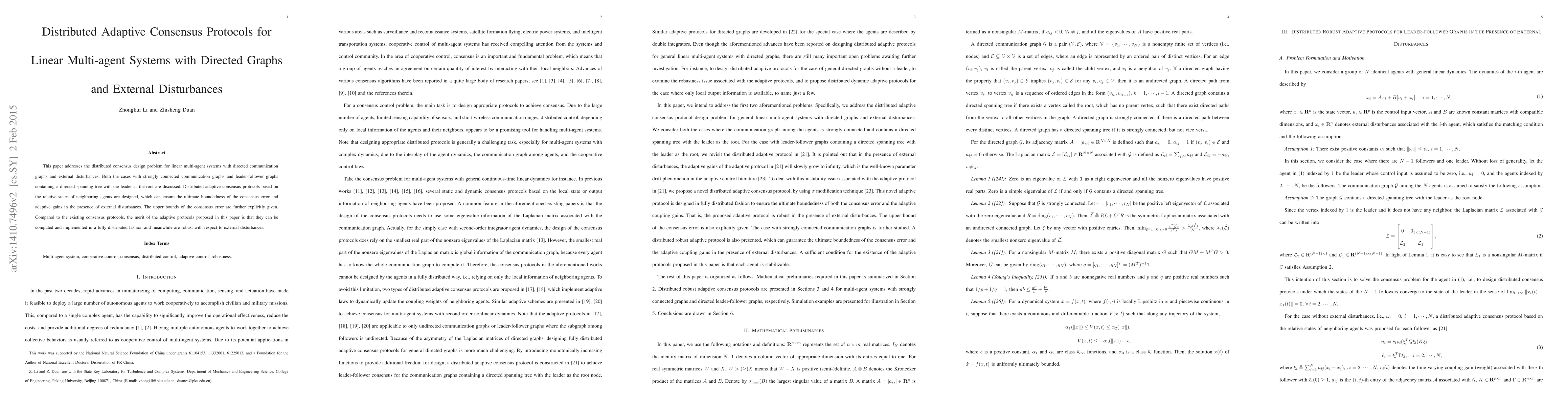 This paper proposes distributed adaptive consensus protocols for linear multi-agent systems with directed communication graphs, ensuring bounded consensus error and robustness against external disturbances. The protocols can be fully implemented in a distributed manner, offering improved robustness compared to existing methods.