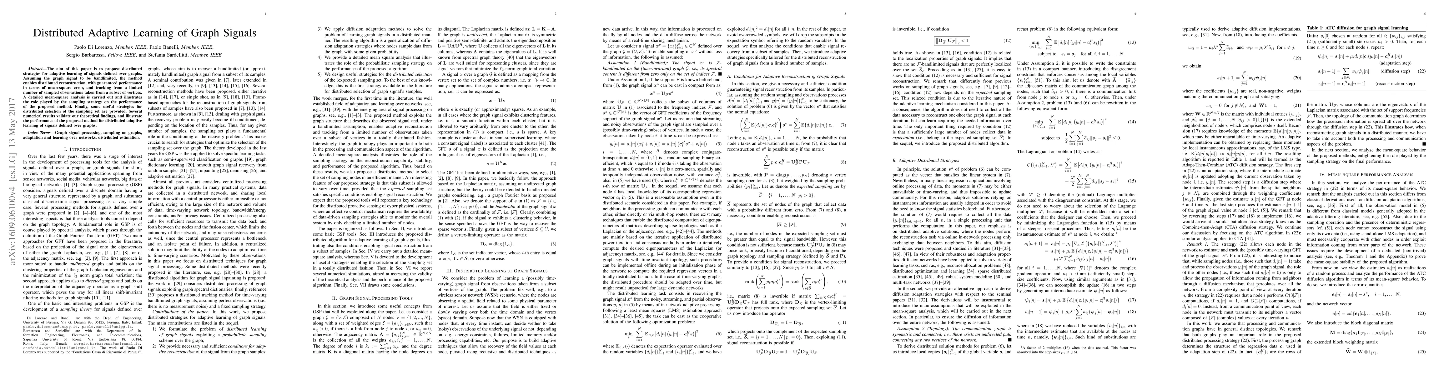 This paper proposes distributed strategies for adaptive learning of bandlimited graph signals, ensuring reconstruction accuracy and tracking from limited sampled observations. Theoretical analysis and numerical results validate the effectiveness of the proposed method and provide insights into optimal sampling strategies.