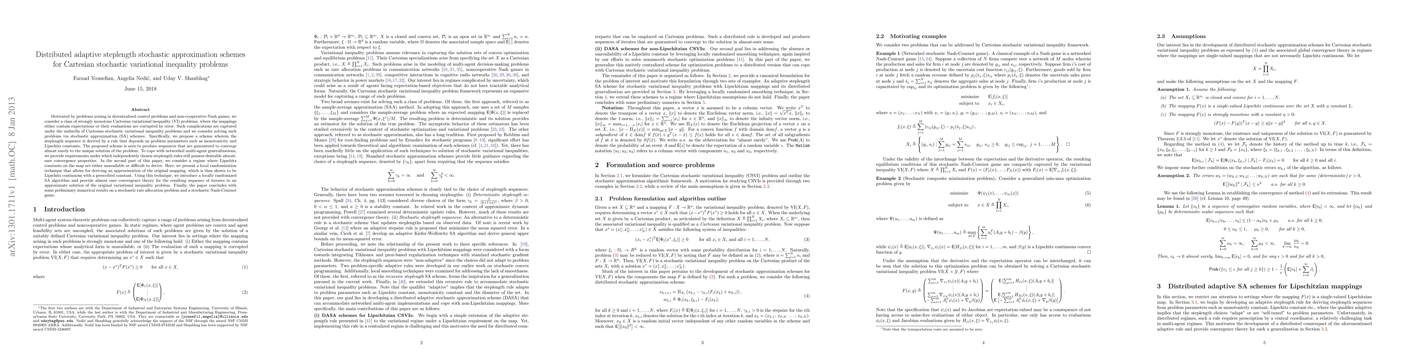 This paper proposes adaptive steplength stochastic approximation schemes for solving Cartesian stochastic variational inequality problems, focusing on decentralized control and non-cooperative games. It introduces a scheme that guarantees almost sure convergence to the unique solution, and extends it to networked multi-agent settings, providing a local randomization technique for scenarios where Lipschitz constants are unavailable.