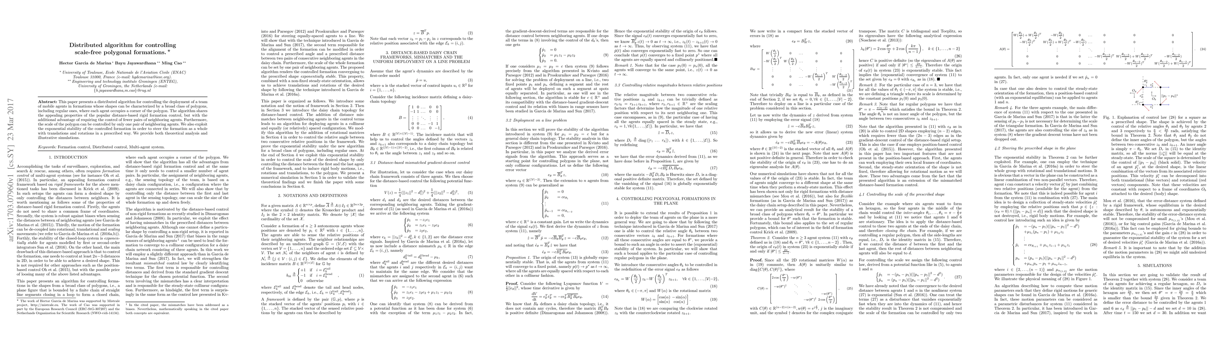 This paper introduces a distributed algorithm for managing mobile agents to form scale-free polygonal shapes, requiring fewer control pairs compared to traditional methods. The algorithm leverages exponential stability for precise translational and rotational control of the formation, supported by theoretical analysis and simulations.