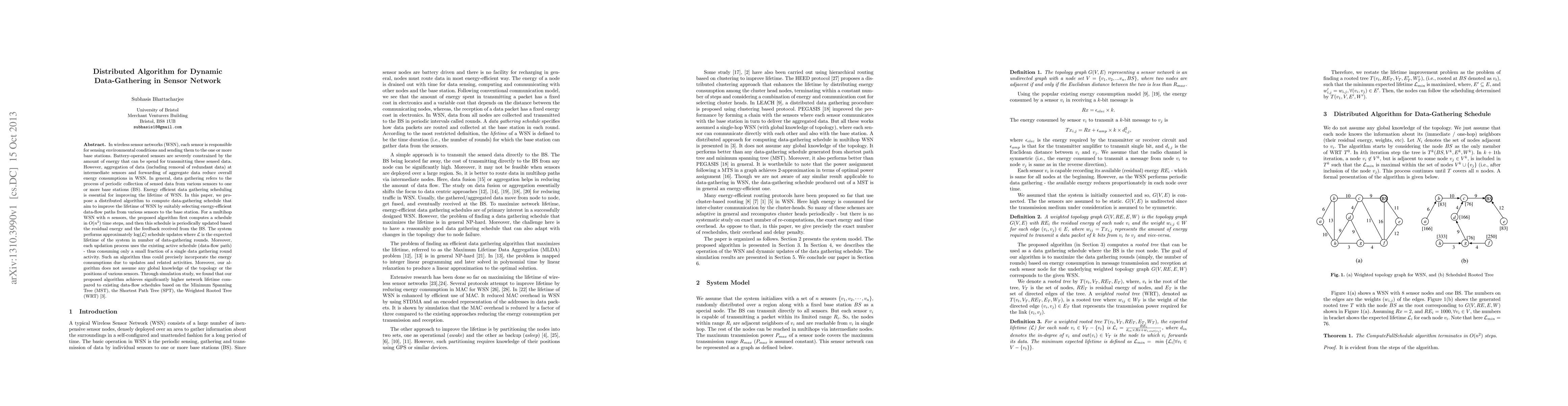 This paper proposes a distributed algorithm for dynamic data-gathering in wireless sensor networks (WSN) to enhance network lifetime by optimizing energy-efficient data-flow paths. The algorithm computes an initial schedule in $O(n^2)$ time and updates it periodically based on sensor residual energy, achieving significantly higher network lifetime compared to existing methods.
