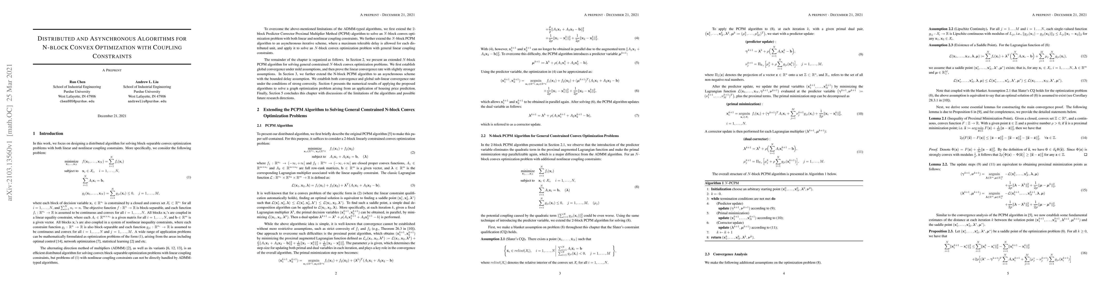 Researchers propose two algorithms for solving N-block convex optimization problems with coupling constraints, achieving sub-linear convergence under bounded delay assumptions.