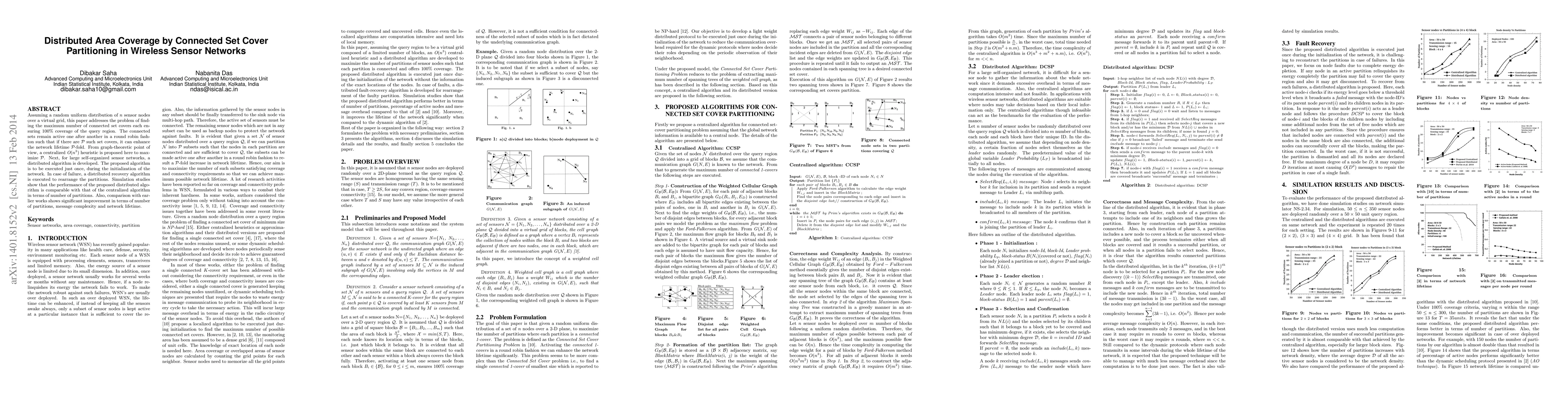 This paper proposes a centralized O(n³) heuristic and a distributed algorithm for maximizing connected set covers in wireless sensor networks to ensure 100% coverage and enhance network lifetime. The distributed algorithm, executed during initialization, shows comparable performance to the centralized approach and offers significant improvements in partition count, message complexity, and network lifetime.