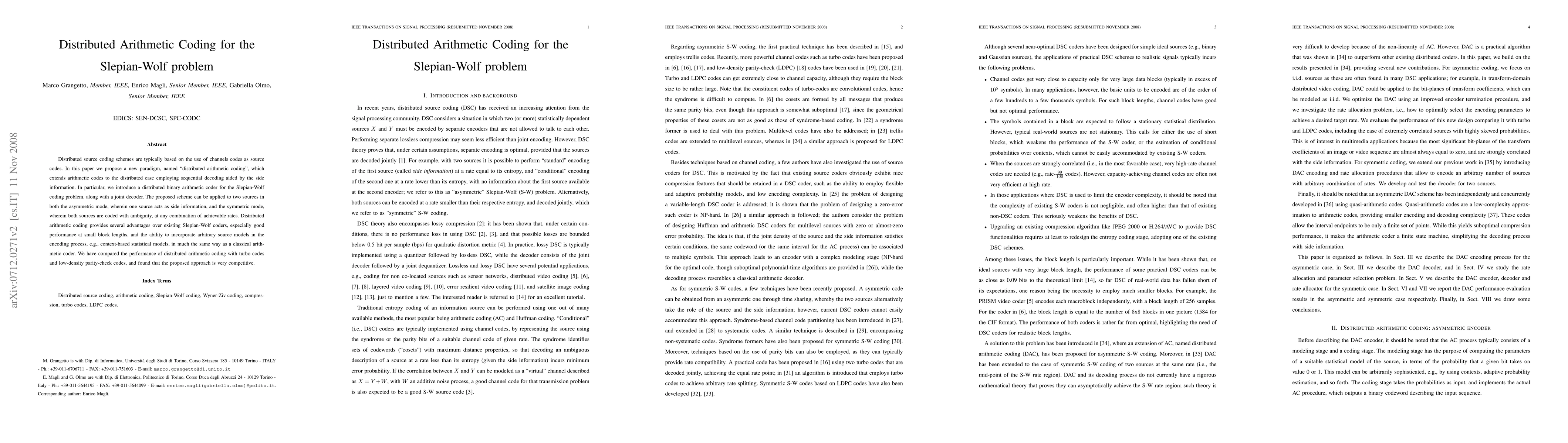 This paper proposes a novel "distributed arithmetic coding" paradigm for the asymmetric Slepian-Wolf problem, utilizing arithmetic codes for both source and channel coding. The new distributed binary arithmetic coder, combined with a soft joint decoder, offers competitive performance compared to turbo codes and low-density parity-check codes, especially for small block lengths and flexible source models.