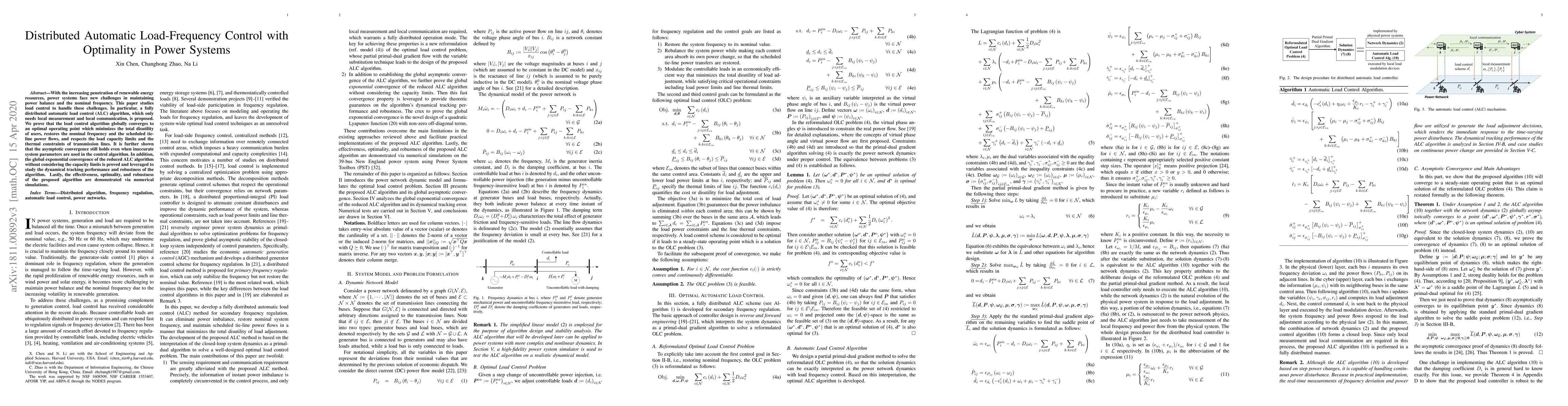 This paper proposes a fully distributed automatic load control algorithm to balance power supply and demand in systems with high renewable energy penetration, ensuring global convergence to an optimal operating point while respecting load and transmission line constraints. Numerical simulations demonstrate the algorithm's effectiveness, optimality, and robustness even with inaccurate system parameters.
